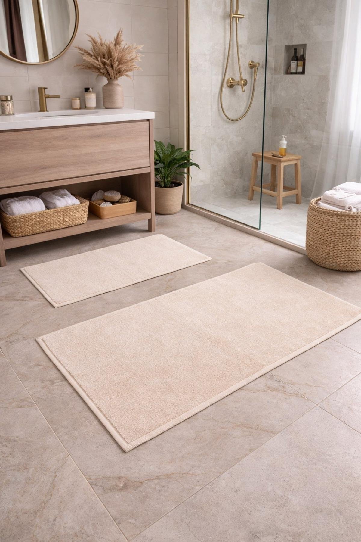 - %100 pamuk materyalden üretilmiş olup, banyo deneyiminizi konforlu ve yumuşak kılar.; - Yıkanabilir özelliği sayesinde kolayca temizlenebilir ve hijyenik kullanım sağlar.; - 60x100 cm ve 50x70 cm boyutlarında iki adet paspas içerir, banyonuzun farklı alanlarına uyum sağlar.; - Türkiye'de üretilmiş olup, yerel üretimle desteklenmiş bir üründür.; - İnce hav yüksekliği (6 mm altı) ile banyonuzda ferah bir atmosfer yaratır ve hızlı kuruma özelliği sunar.;