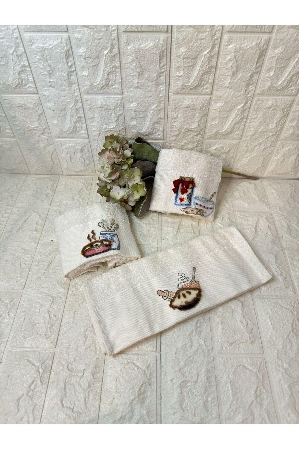 %100 pamuk materyali sayesinde yumuşak dokusuyla cildinize nazikçe dokunur ve mutfakta konforlu bir kullanım sunar; Üçlü set halinde sunulan bu havlular, mutfakta ihtiyacınız olan pratikliği ve şıklığı bir arada sağlar; Yıkama talimatlarına uygun şekilde kolayca temizlenebilir; böylece havlularınız uzun süre ilk günkü gibi kalır; Tafting nakış detaylarıyla süslenmiş deseniyle mutfak dekorasyonunuza estetik bir dokunuş katar;