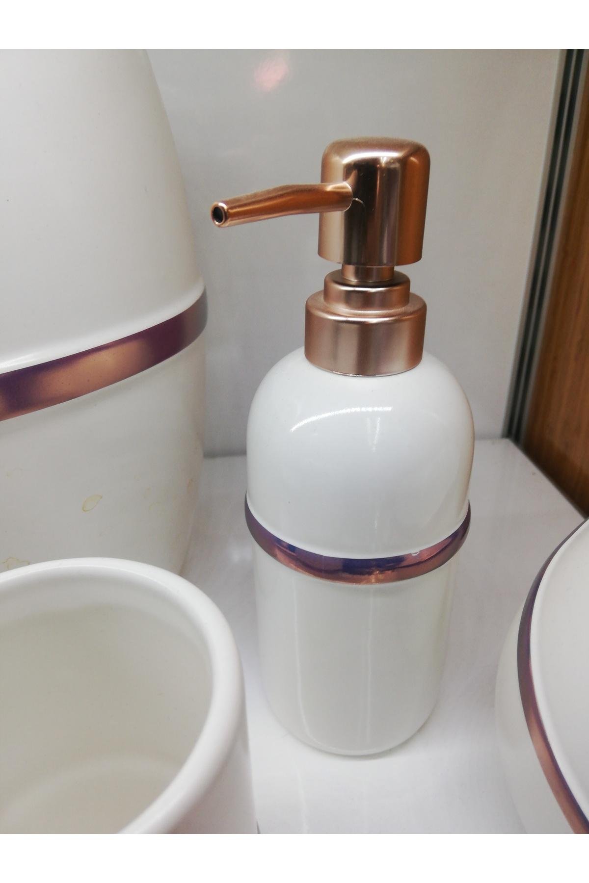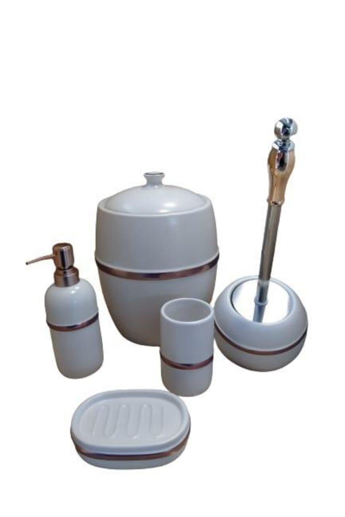 Ürün İçeriği; 1 Adet Sıvı Sabunluk 1 Adet Katı Sabunluk 1 Adet Diş Fırçalık 1 Adet Wc Fırçası 1 Adet Çöp Kovası Menşei:Türkiye