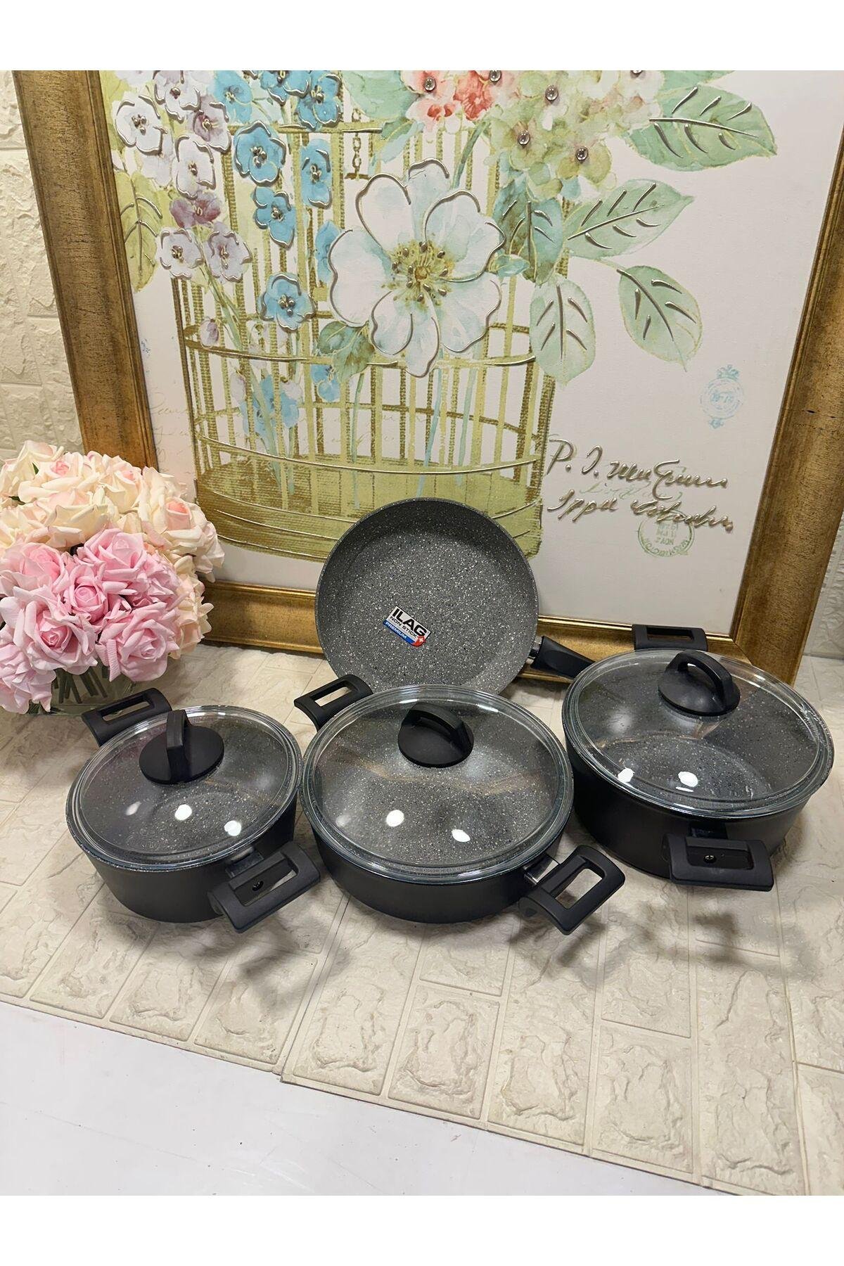 - Yüksek kaliteli granit malzemesi sayesinde yapışmaz taban özelliği, pişirme sırasında yiyeceklerin tencereye yapışmasını önler.; - 7 parçadan oluşan set içeriğiyle mutfak ihtiyaçlarınız tek bir pakette toplanır; her bir parça pratik kullanım sunar.; - İç yüzeydeki mat siyah renk, şık görünümün yanı sıra dayanıklılığı artırarak uzun süreli kullanım imkanı sağlar.; - Dış yüzeydeki granit kaplama, hem estetik hem de fonksiyonel avantajlar sunarak mutfak tezgahınıza modern bir dokunuş katar.; - Kolay temizlenebilir yapısıyla bakımı pratiktir; gıdayla temas eden yüzeylerin hijyenik tutulması kolaylaşır.; - Gıda temasına uygun olarak tasarlanmıştır; güvenle kullanabilirsiniz.; - Renk seçeneği olarak beyaz tercih edilmiştir; mutfak dekorasyonunuza zarif bir uyum sağlar.