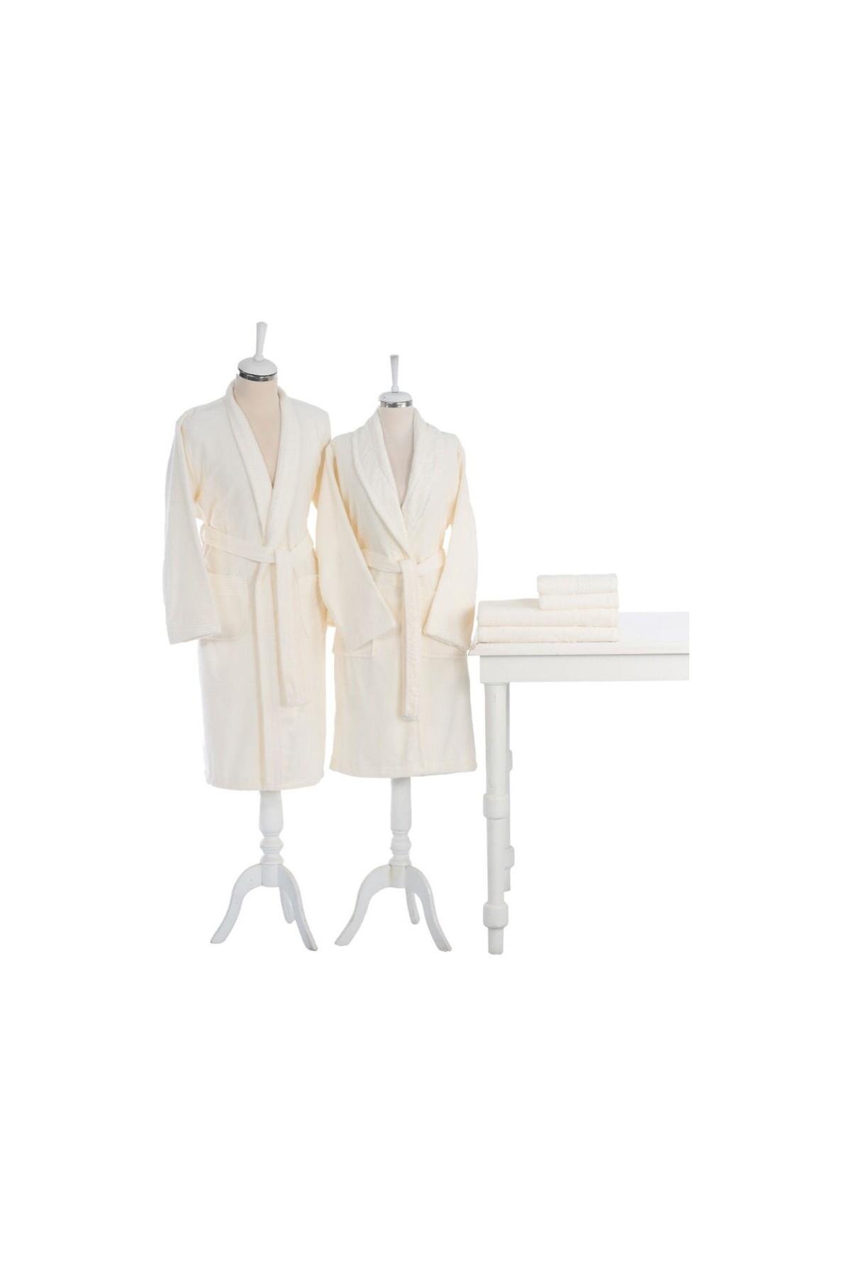 Bornoz: 143x116 cm (1 Adet), Bornoz: 131x107 cm (1 Adet), Plaj Havlusu: 70x150 cm (2 Adet), El Havlusu: 50x80 cm (2 Adet), Beden:M/L, Ebat:Çift Kişilik, Ağırlık:3.277 Gr/Adet, Dış Kumaş:%100 Pamuk