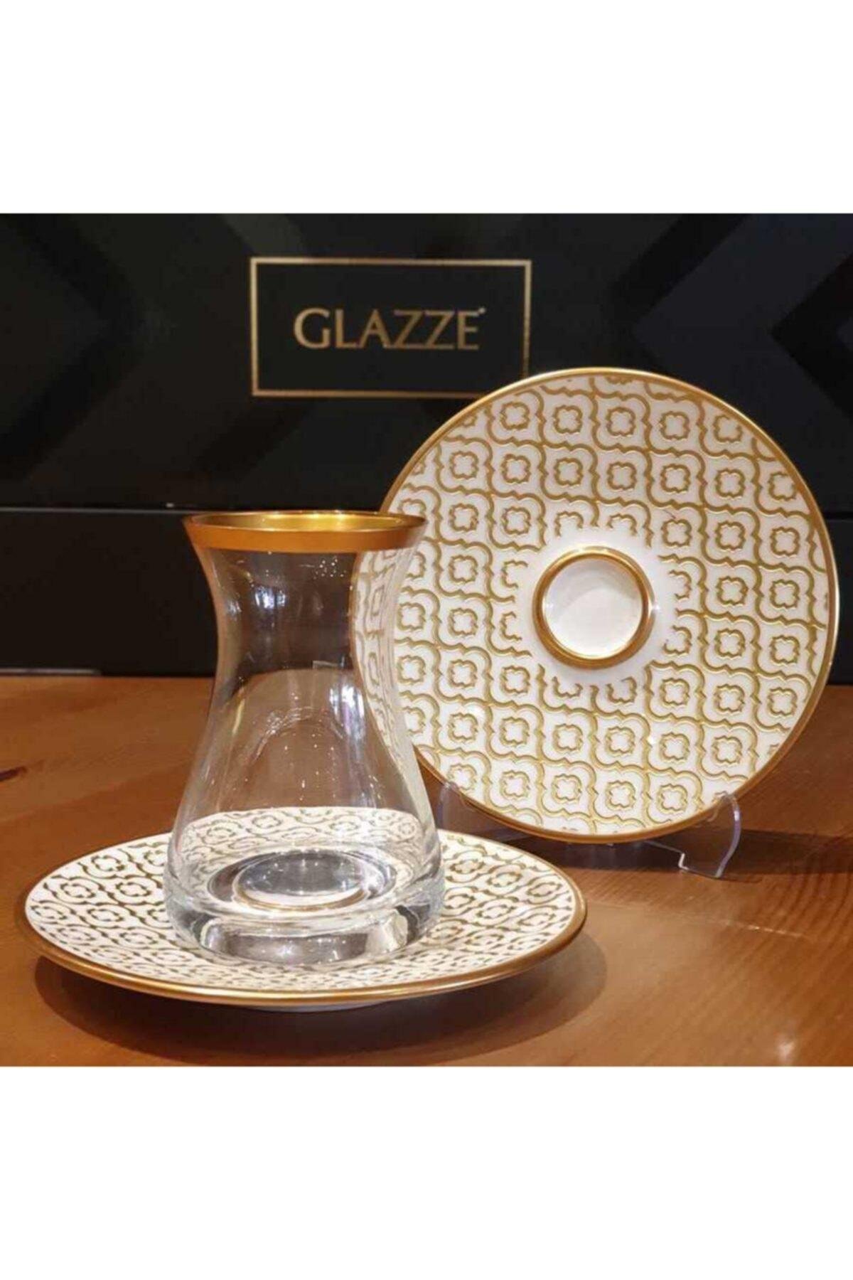 Glazze 12 parça porselen yaldız çay bardak takımı 6 kişilik ;12 parça çay fincan takımı ;6 adet çay fincan 6 adet çay fincanı tabağı Not: Tüm ürünler bulaşık makinesinde yıkanabilirler,ancak ürünlerin altın ,platin gibi kaplamalarının , özel renklendirilmiş desenlerinin ve hammadde özelliklerinin uzun yıllar boyunca ilk günkü gibi kalmasını sağlamak için , elde yıkanması önerilir.Bulaşık makinası , bu ürünlerin normal yıpranma sürecini kısaltır.