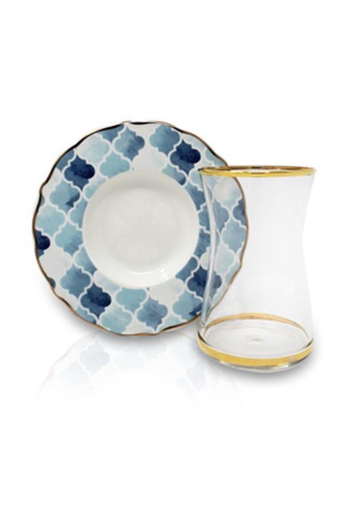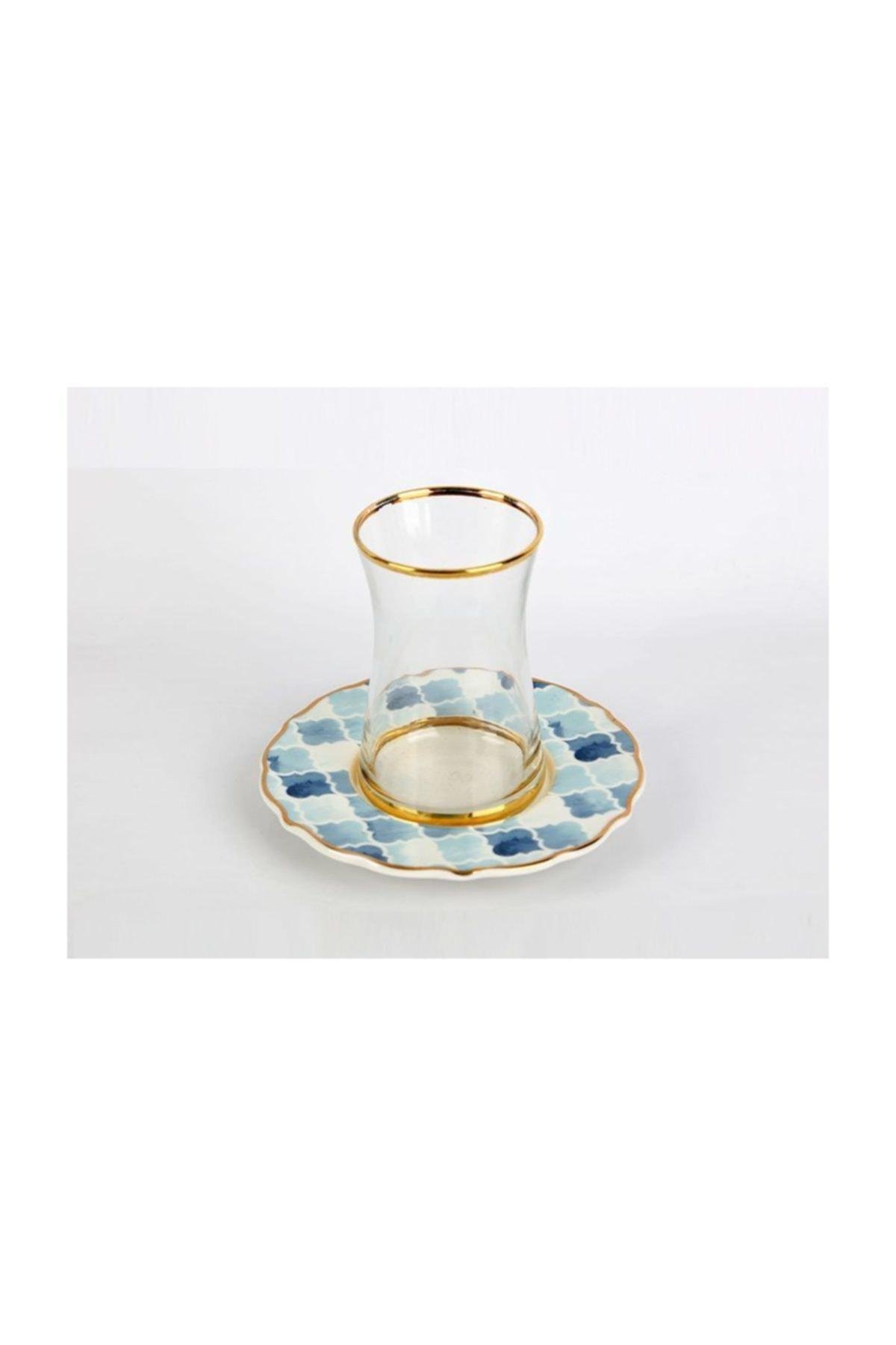 Barok art mavi mozaik 6'lı çay takımı koleksiyon ;