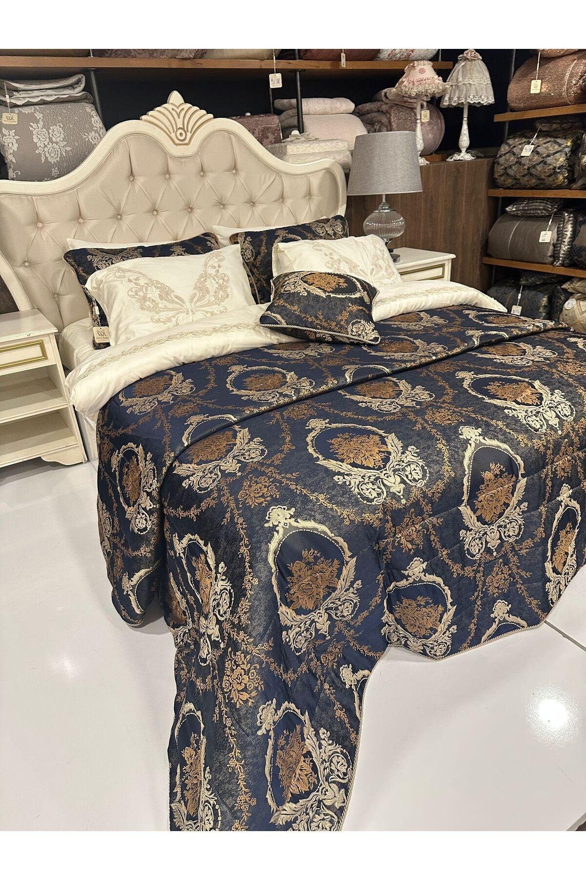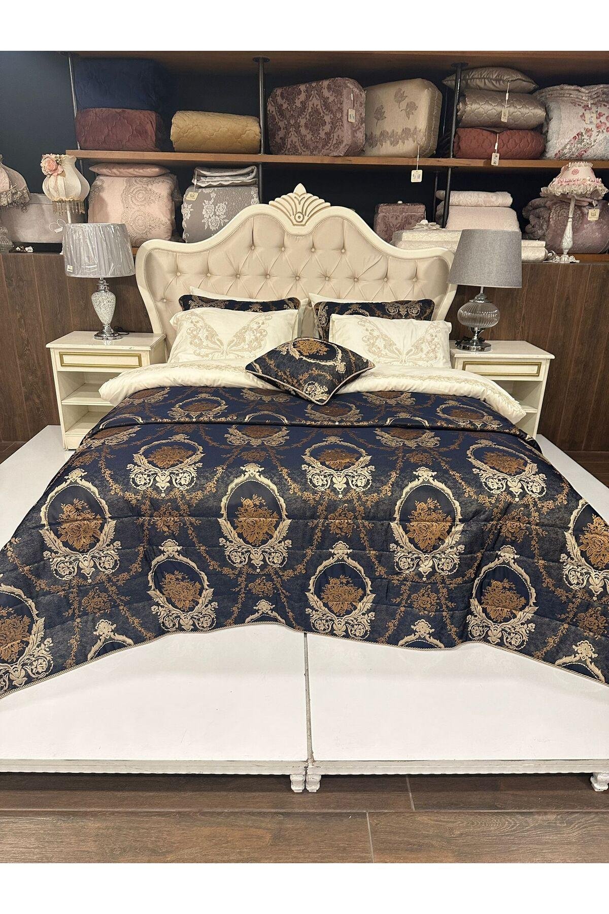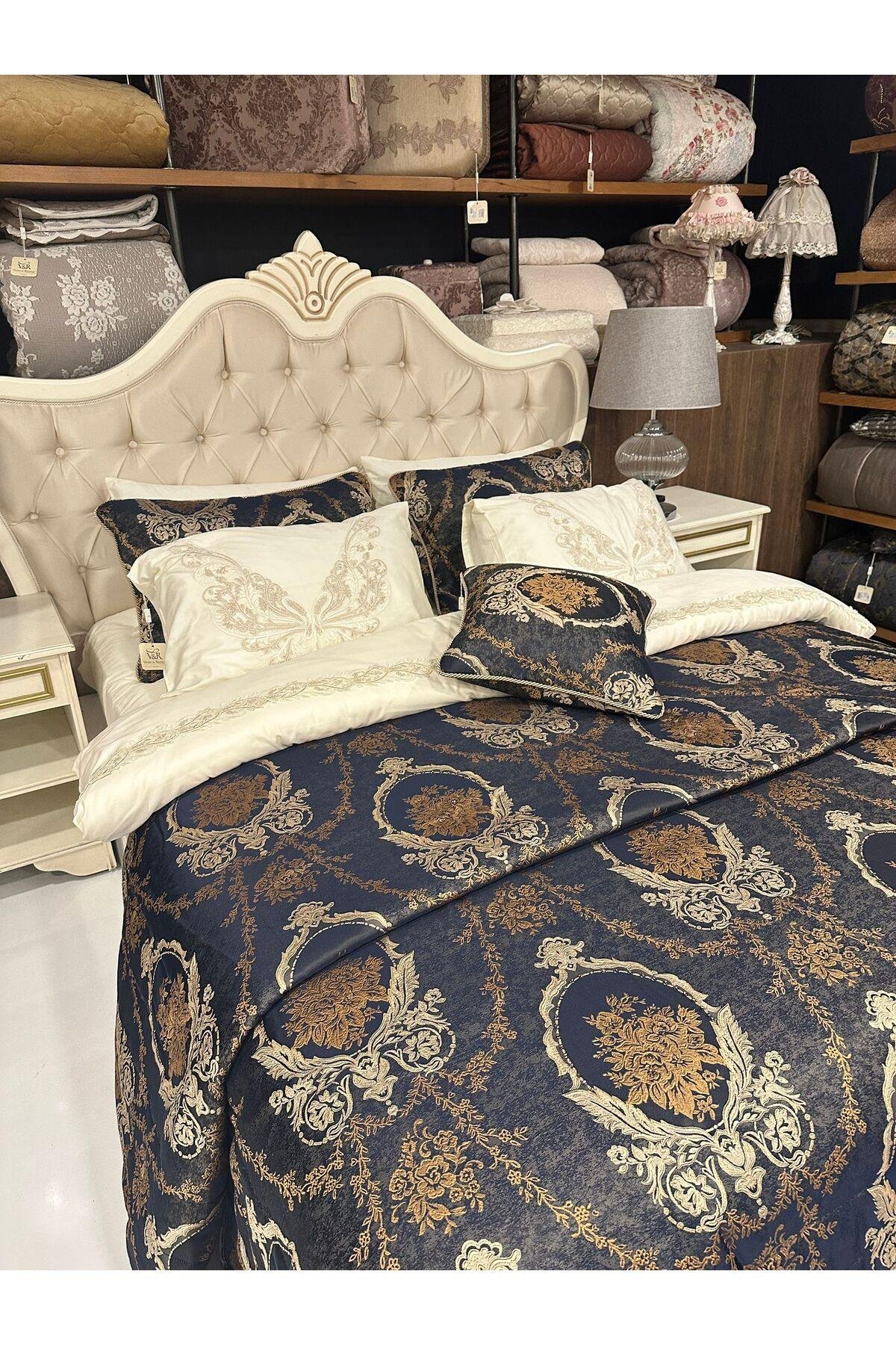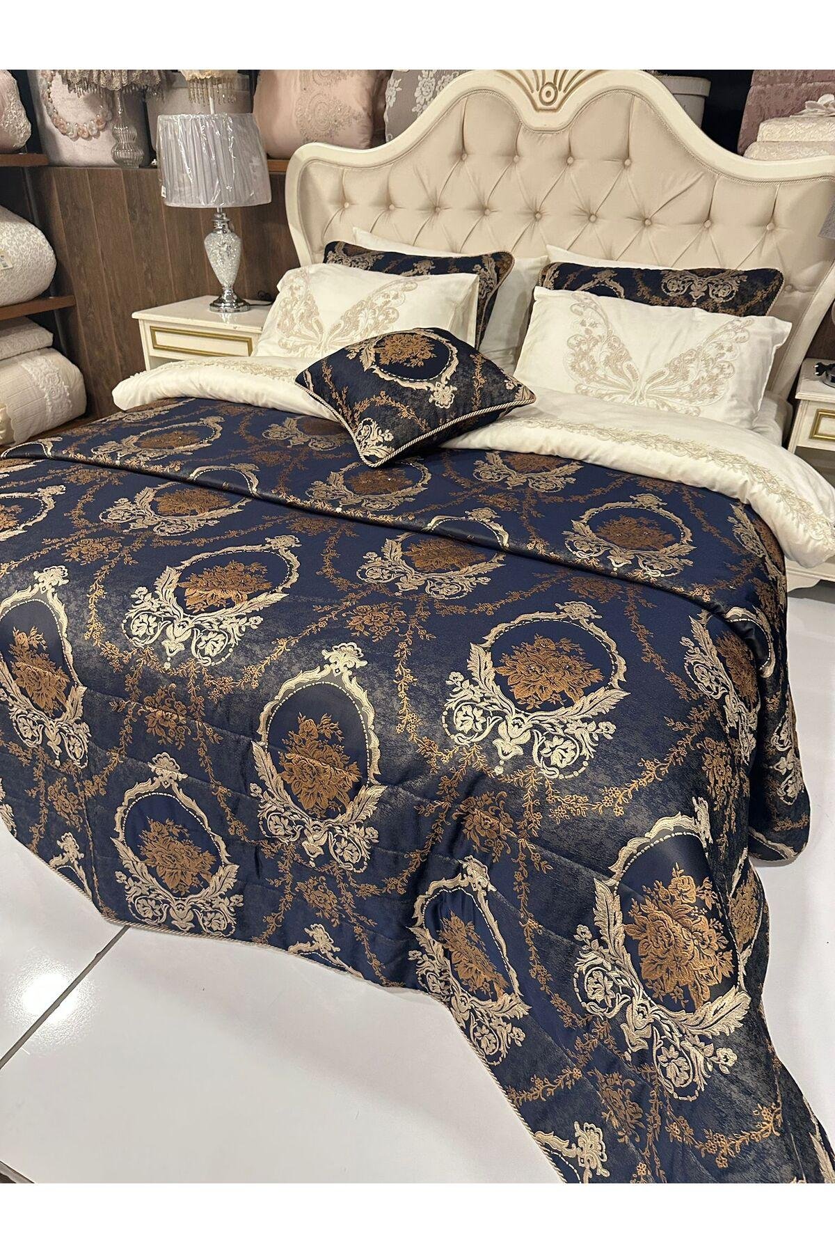 - Geniş kullanım alanı sunan 260x270 cm boyutlarındaki çeyizlik yatak örtüsü, geniş yataklarınızda bile rahatça kullanılabilir.; - Yüksek kaliteli pamuk polyester karışımı kumaşı sayesinde uzun süreli dayanıklılık ve konfor sağlar.; - Lacivert rengiyle şık ve modern bir görünüm kazandırırken, her türlü oda dekorasyonuyla kolayca uyum sağlar.; - Web renk seçeneği ile görsel olarak zenginleştirilmiş tasarım, mekanınıza estetik bir dokunuş ekler.