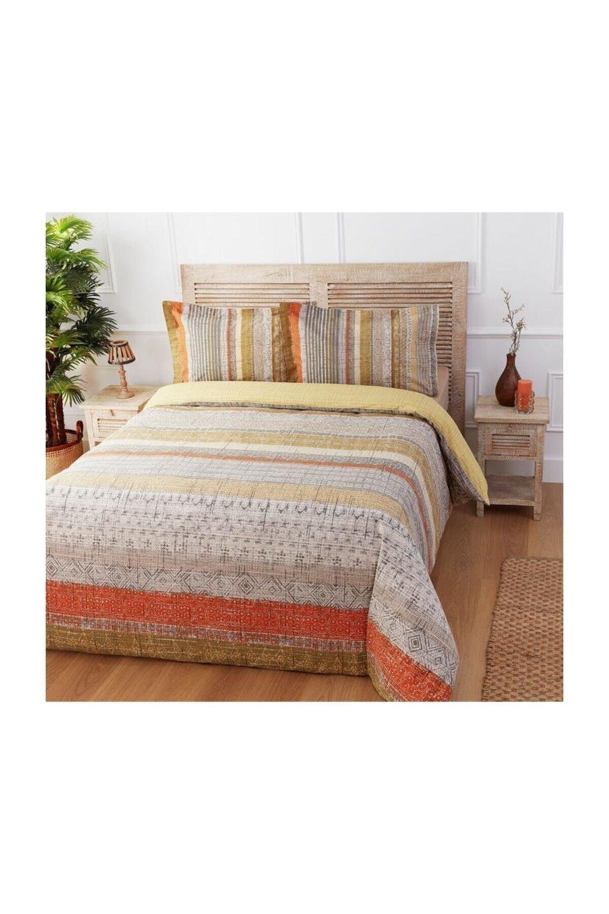 . Içerik 200x220 cm nevresim (1 adet), 240x260 cm çarşaf (1 adet), 50x70 cm yastık kılıfı (2 adet) kumaş bilgisi: %100 pamuk yıkama ve kullanım bilgileri makinede ve elde 40 c'de yıkanabilir. Çamaşır suyu kullanılmaz. Ütü taban sıcaklığı en çok 150 c olan ütü kullanabilir. Kuru temizleme yapılamaz. Düşük sıcaklıklarda kurutulabilir. Kullanma talimatlarına ve etiket bilgilerine dikkat ediniz. Açık ve koyu renkleri ayrı ayrı yıkayınız. Nevresim ve yastık kılıfı gibi ürünleri ters çevirerek yıkayınız. Yıkama sonrası ıslak bekletmeyiniz. Yatak örtüsü, kapitone nevresim, yorgan gibi içerisinde; vatka, elyaf vb. Malzeme bulunan ürünlerin sererek kurutulması önerilir.