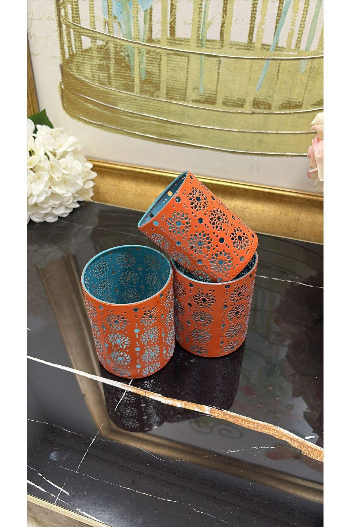 - Üçlü set halinde sunulan bu dekoratif mumluk, mekanınıza sıcaklık ve şıklık katar.; - Dayanıklı metal malzemesi ile uzun ömürlü kullanım vaat eder.; - Canlı turuncu rengiyle dikkat çeken tasarım, evinizin atmosferini canlandırır.; - Web renk koduna sahip turuncu tonuyla modern ve çağdaş dekorasyon anlayışına uyum sağlar.; - Her bir parçası ayrı ayrı tasarlanmış olup, üçlü set olarak estetik bir bütünlük oluşturur.;