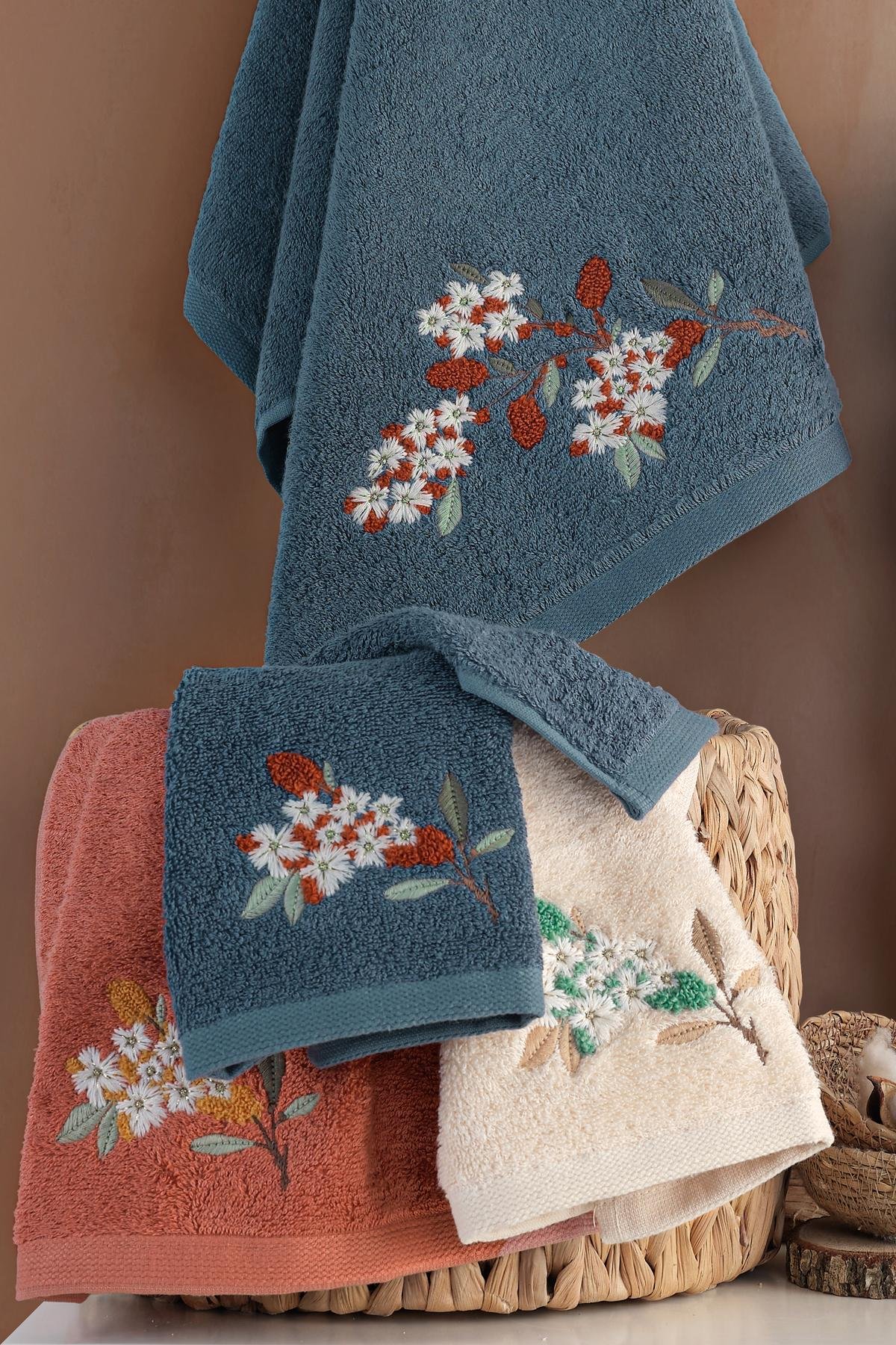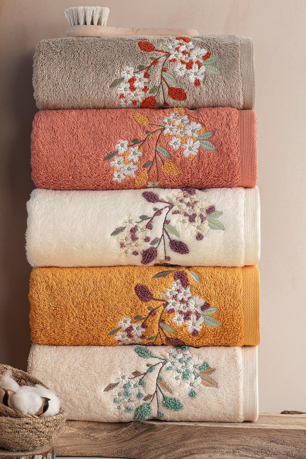 ESTEL - %70 Bambu / %30 Pamuk Nakışlı El Havlusu - 6'lı Set 50x90
