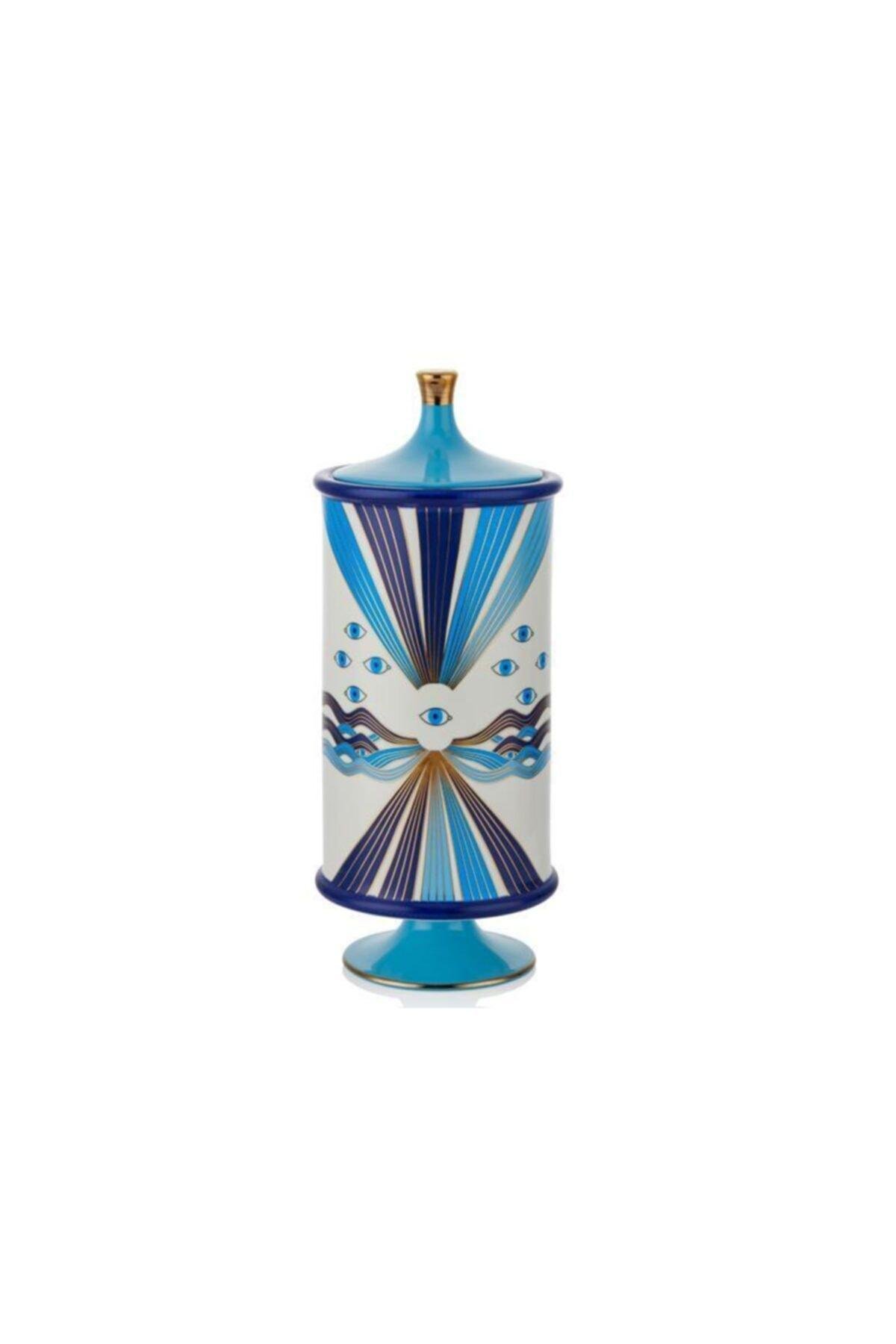 Blue eye mavı beyaz kapaklı vazo 15,4*15,4*38 cm