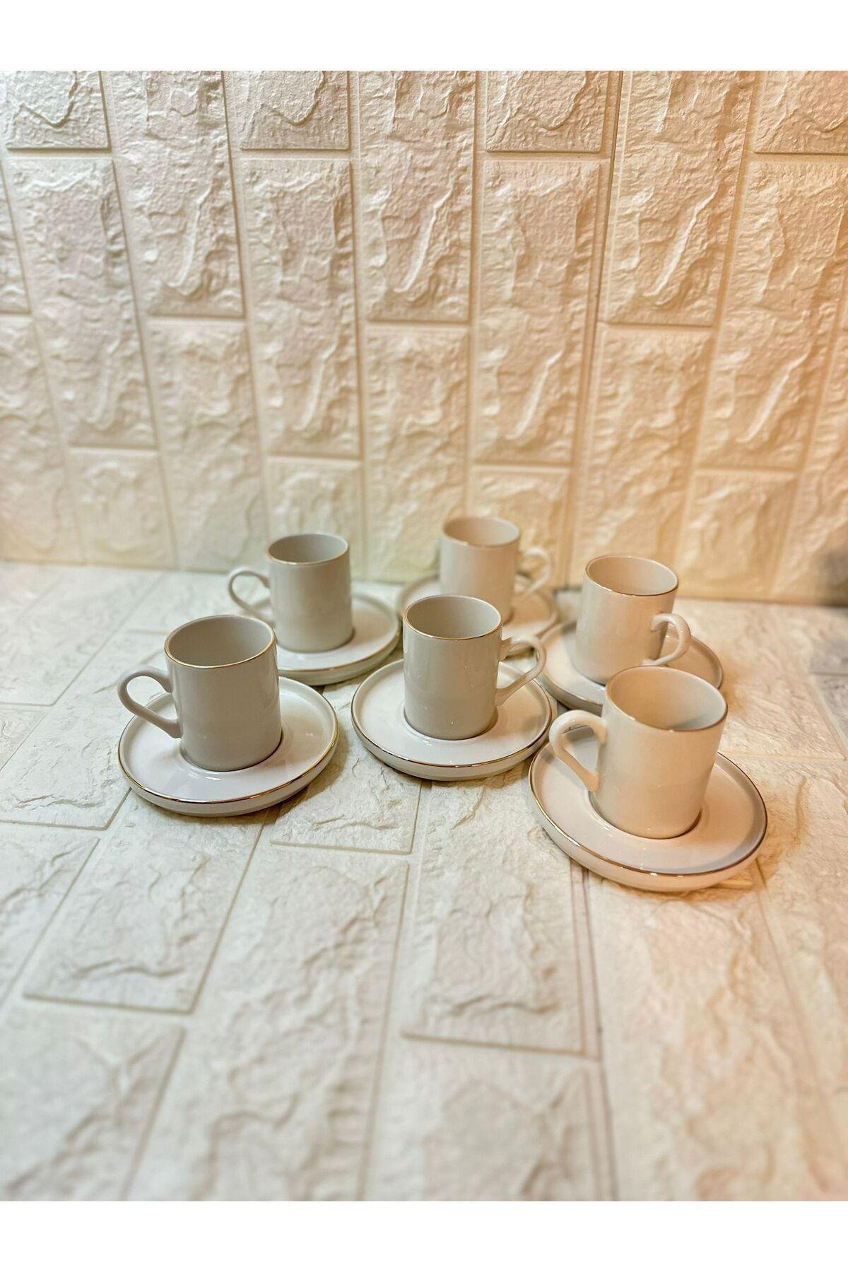 Porselen malzemesi sayesinde uzun ömürlü ve dayanıklı kullanım sunar; Modern tasarımı ile mutfak dekorasyonunuza şık bir dokunuş katar; 6 kişilik set, arkadaşlarınız veya ailenizle keyifli kahve sohbetleri için idealdir;