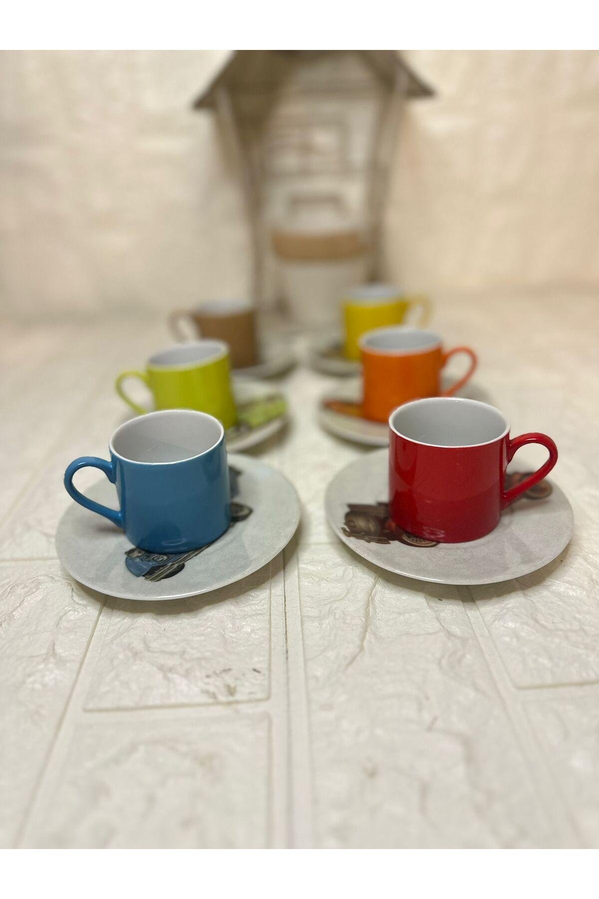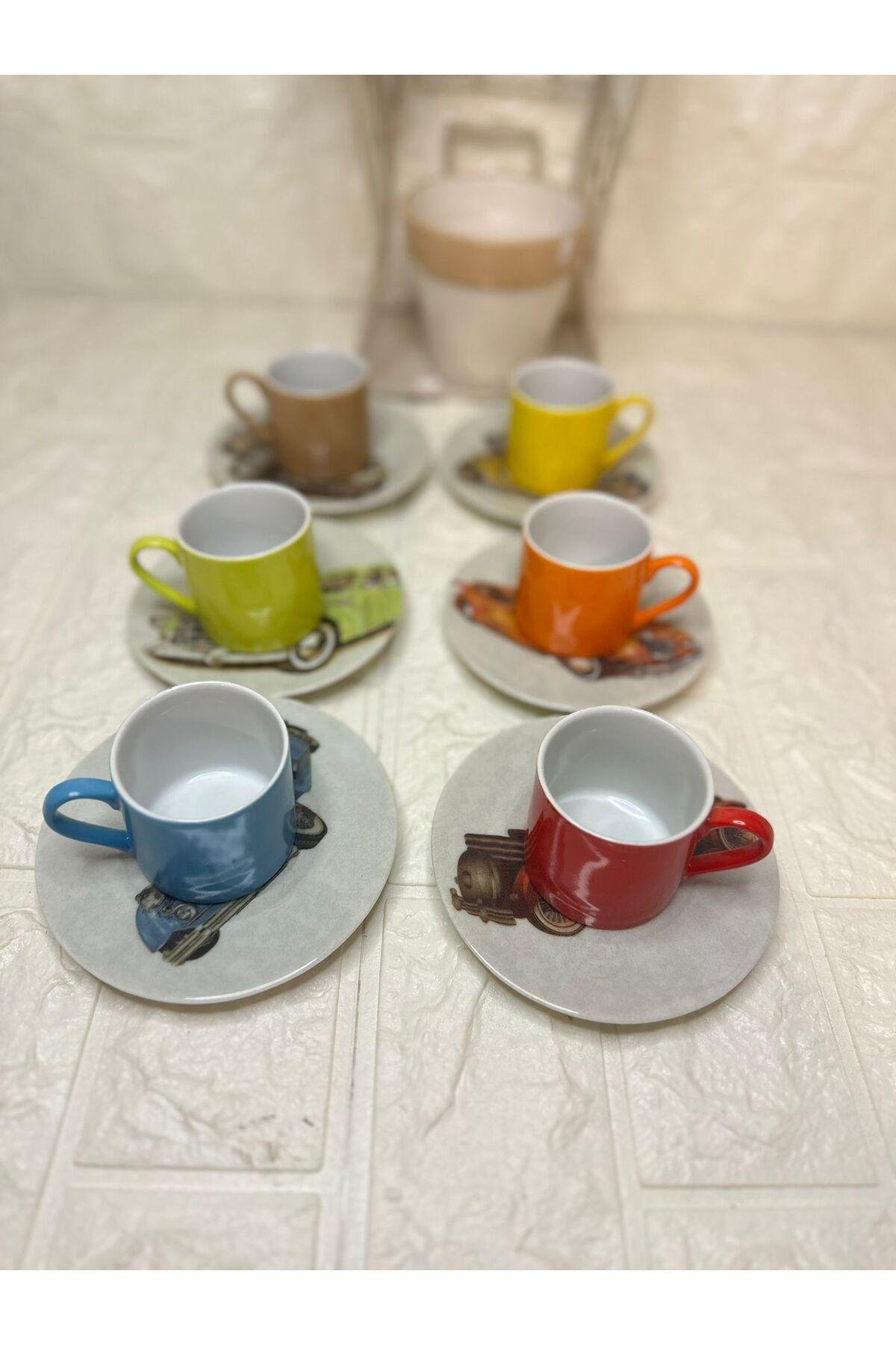 Porselen malzemesi sayesinde uzun süreli kullanım imkanı sunar.; Modern tasarımı ile evinizin dekorasyonuna şık bir dokunuş katar.; 6 kişilik set içeriği, arkadaşlarınızla veya ailenizle kahve keyfinizi paylaşmak için idealdir.; Renkli desenleriyle göze hitap ederken, her fincan farklı bir karaktere sahiptir.;