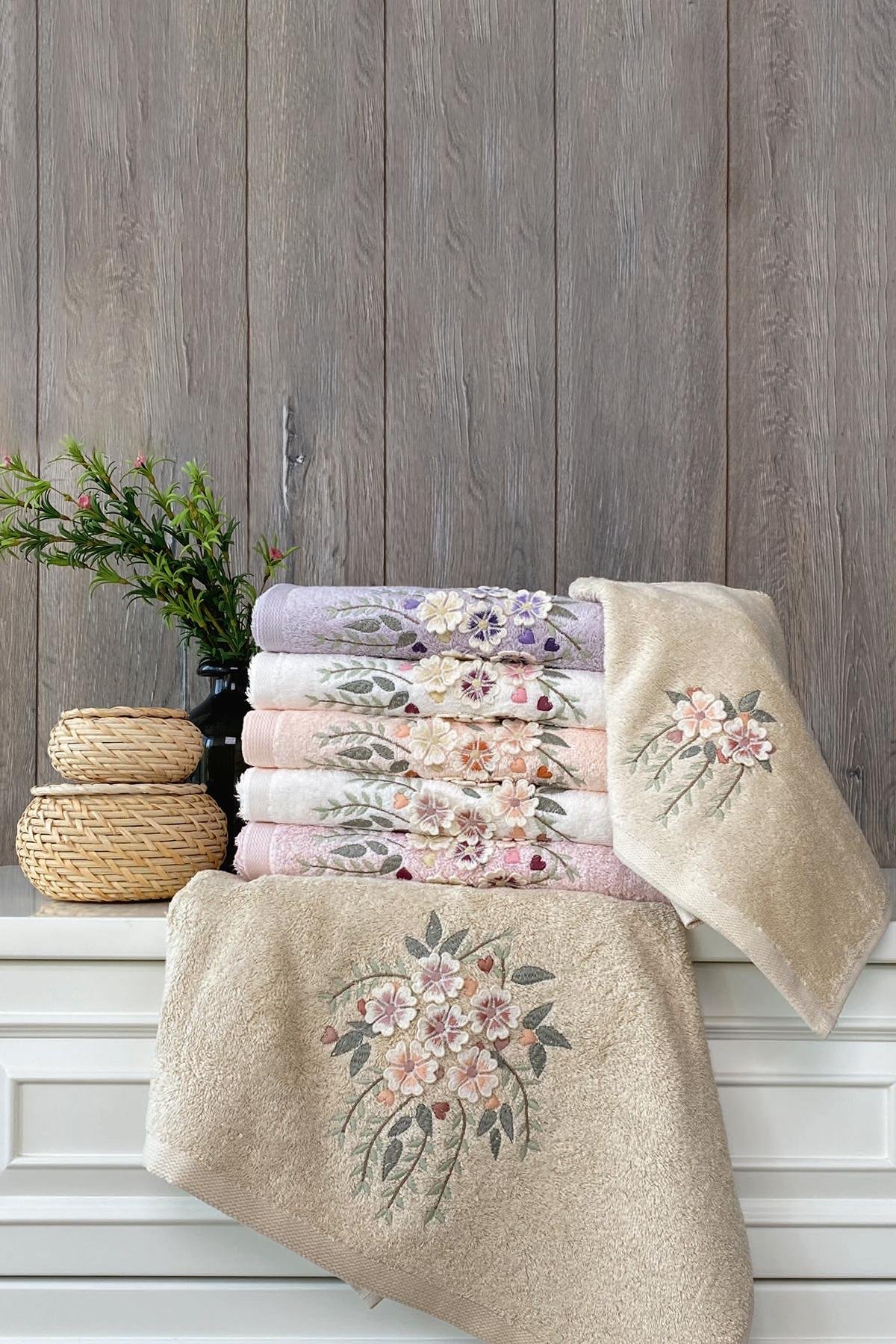 Maribor Collection; Nakışlı Bambu Havlu Serisi / Kutulu 6 Adet
