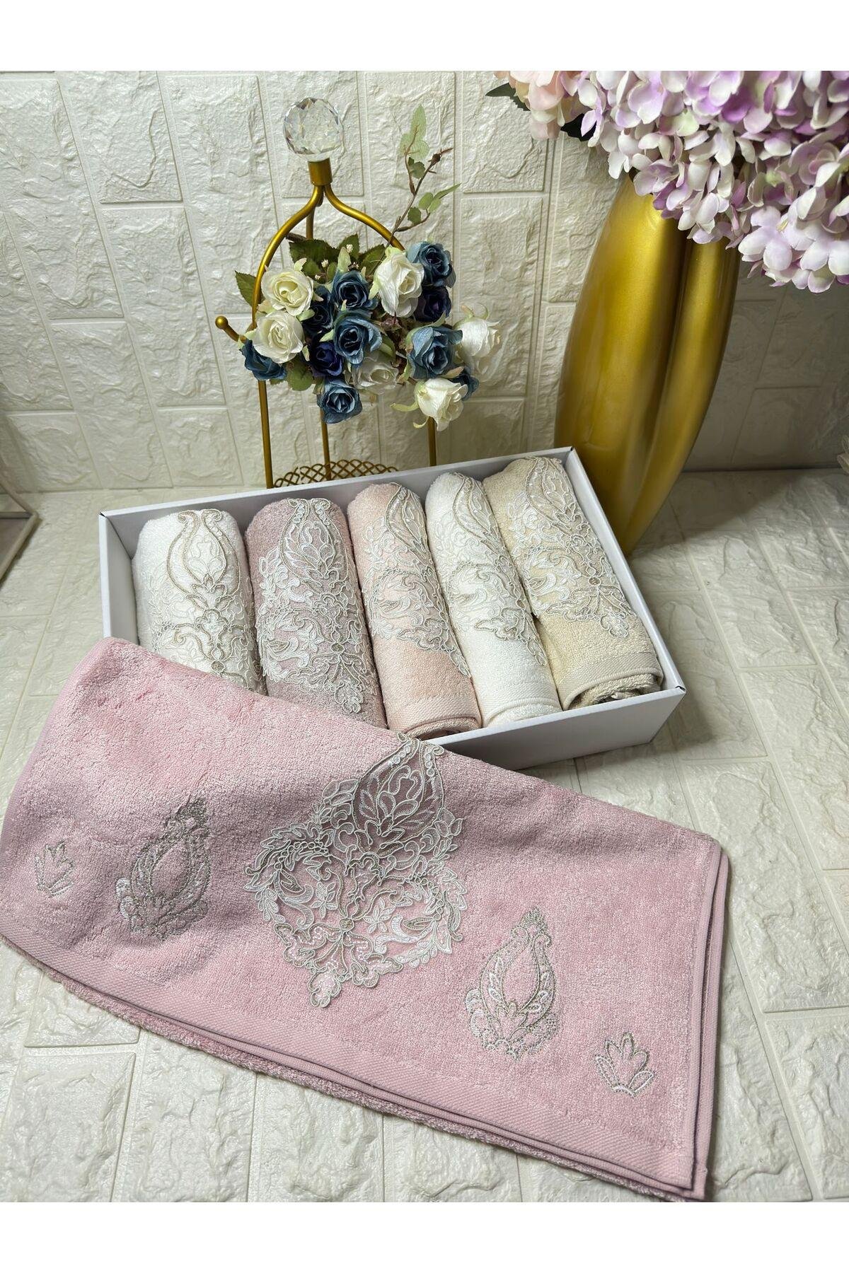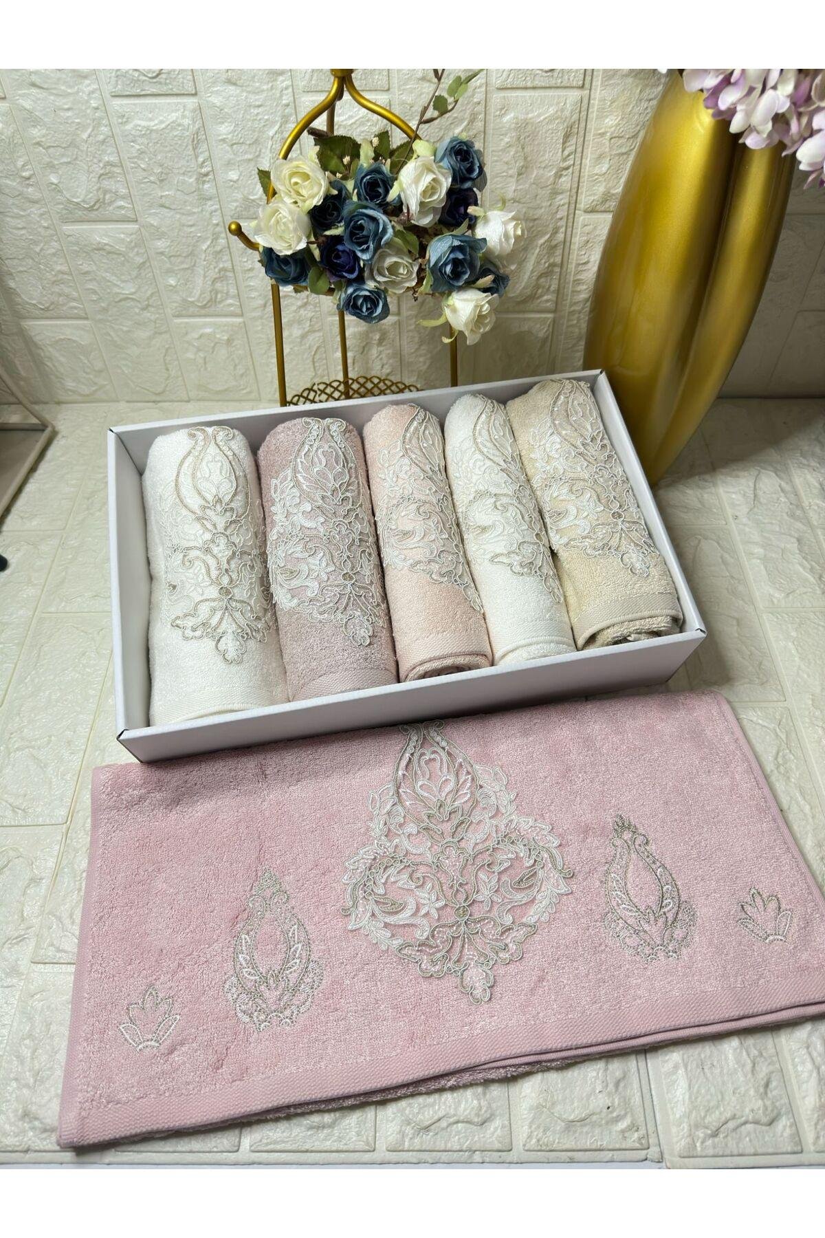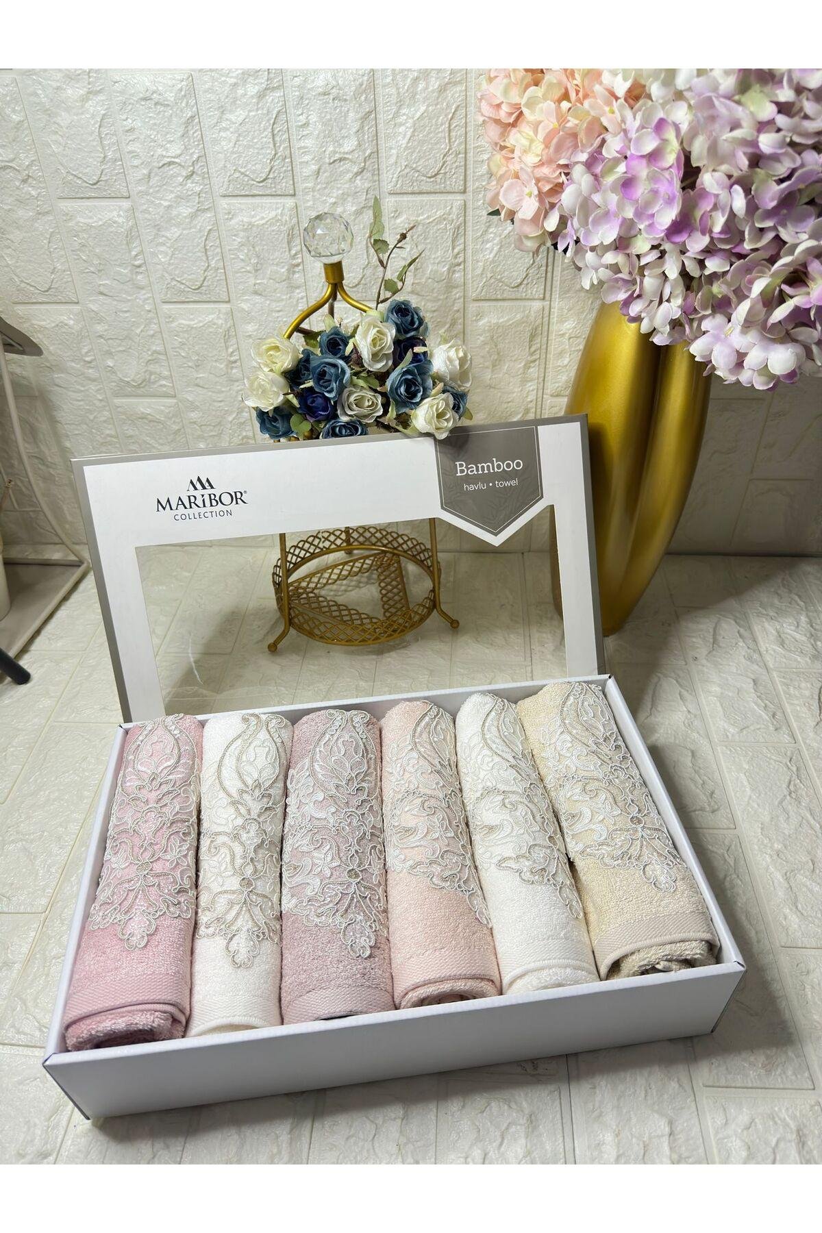 - Set halinde sunulan 6 adet havlu, banyo rutininizi şıklık ve konforla tamamlar; - Nakışlı ve işlemeli desenleriyle estetik bir görünüm sunar, banyonuzda zarif bir atmosfer yaratır; - %70 bambu ve %30 pamuk içeriği ile dayanıklılığı artırırken, yumuşaklığından ödün vermez; - Yüz havlusu tipi olarak tasarlanmış olup, yüzünüzü nazikçe kurulamak için idealdir;