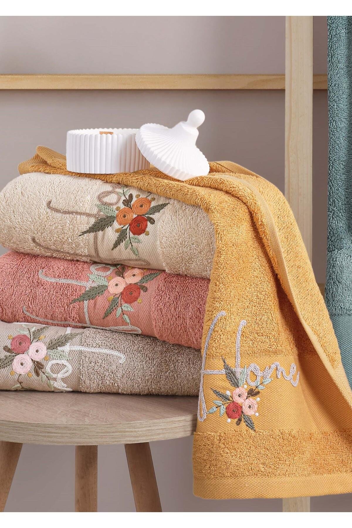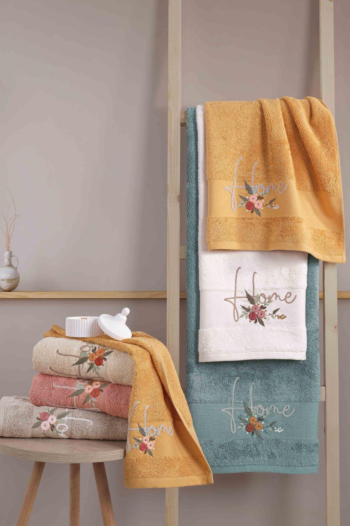 HOME - %70 Bambu / %30 Pamuk Suzeni Nakışlı El Havlusu - 6'lı Set 50x90
