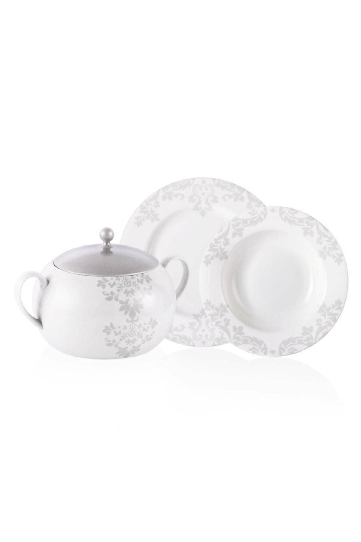 68 parçadan oluşan Miranda Yemek Takımının set içeriği: 12 Adet Servis Tabağı 12 Adet Ara Servis Tabağı 12 Adet Pasta Tabağı 12 Adet Çukur Tabak 12 Adet Komposto Kasesi 1 Adet Büyük Salata Kasesi 1 Adet Küçük Salata Kasesi 1 Adet Büyük Boy Kayık Tabak 1 Adet Küçük Boy Kayık Tabak 1 Adet Çorba Tenceresi ve 1 Adet Kapağı 1 Adet Supla 1 Adet Tuzluk 1 Adet Biberlik