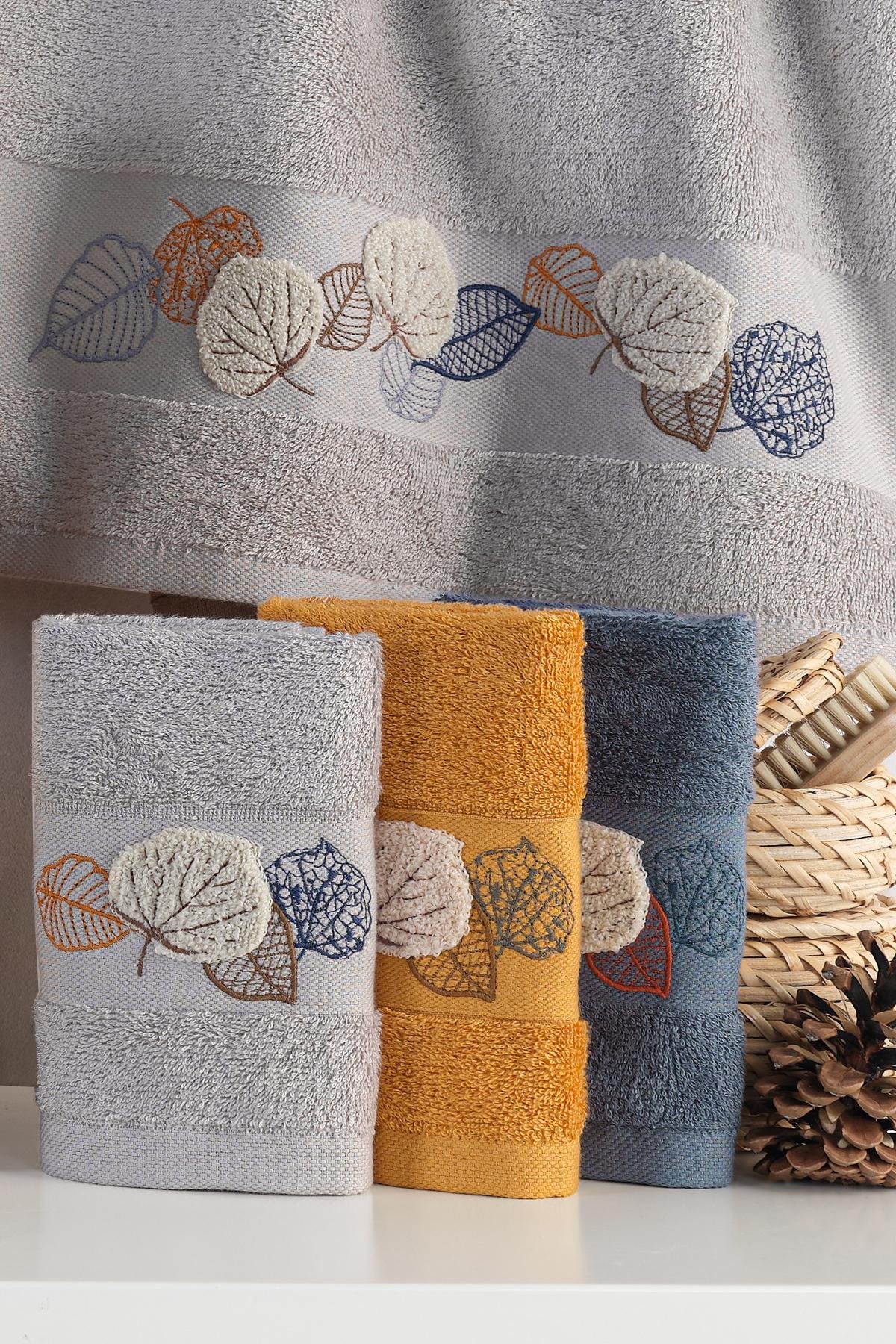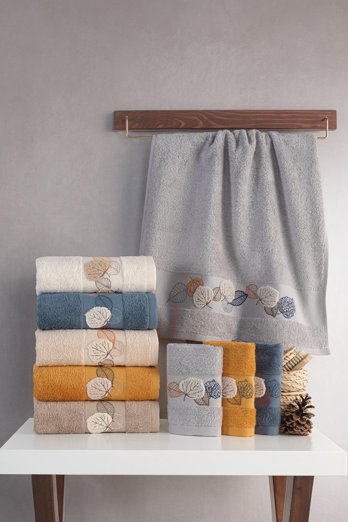 NORRIS - %70 Bambu / %30 Pamuk Nakışlı El Havlusu - 6'lı Set 50x90