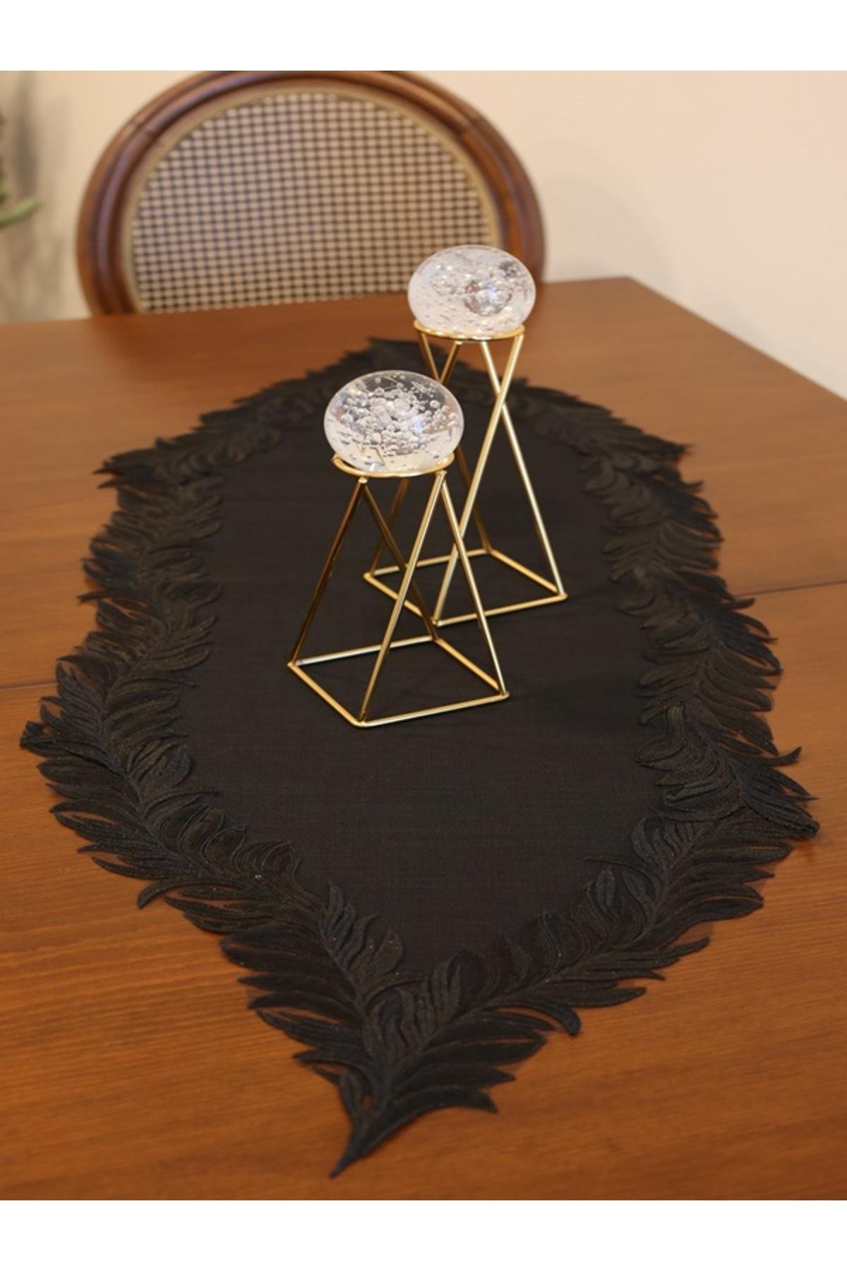 - Keten materyalden üretilmiş olup, dayanıklılığı ve doğal dokusuyla öne çıkar.; - Tek parça halinde sunulan bu runner, dekoratif bir dokunuş sağlar.; - Mariva siyah rengiyle şıklığı ve zarafeti evinize taşır.; - Dikdörtgen şekli sayesinde çeşitli masa ve yüzeylere kolayca uyum sağlar.; - 40 x 160 cm boyutlarındaki ebatı ile geniş kullanım alanı sunar.; - Lacivert web rengi, modern ve sofistike bir görünüm kazandırır.; - Type 1 yıkama talimatına uygun şekilde temizlenebilir; böylece uzun süreli kullanım için idealdir.
