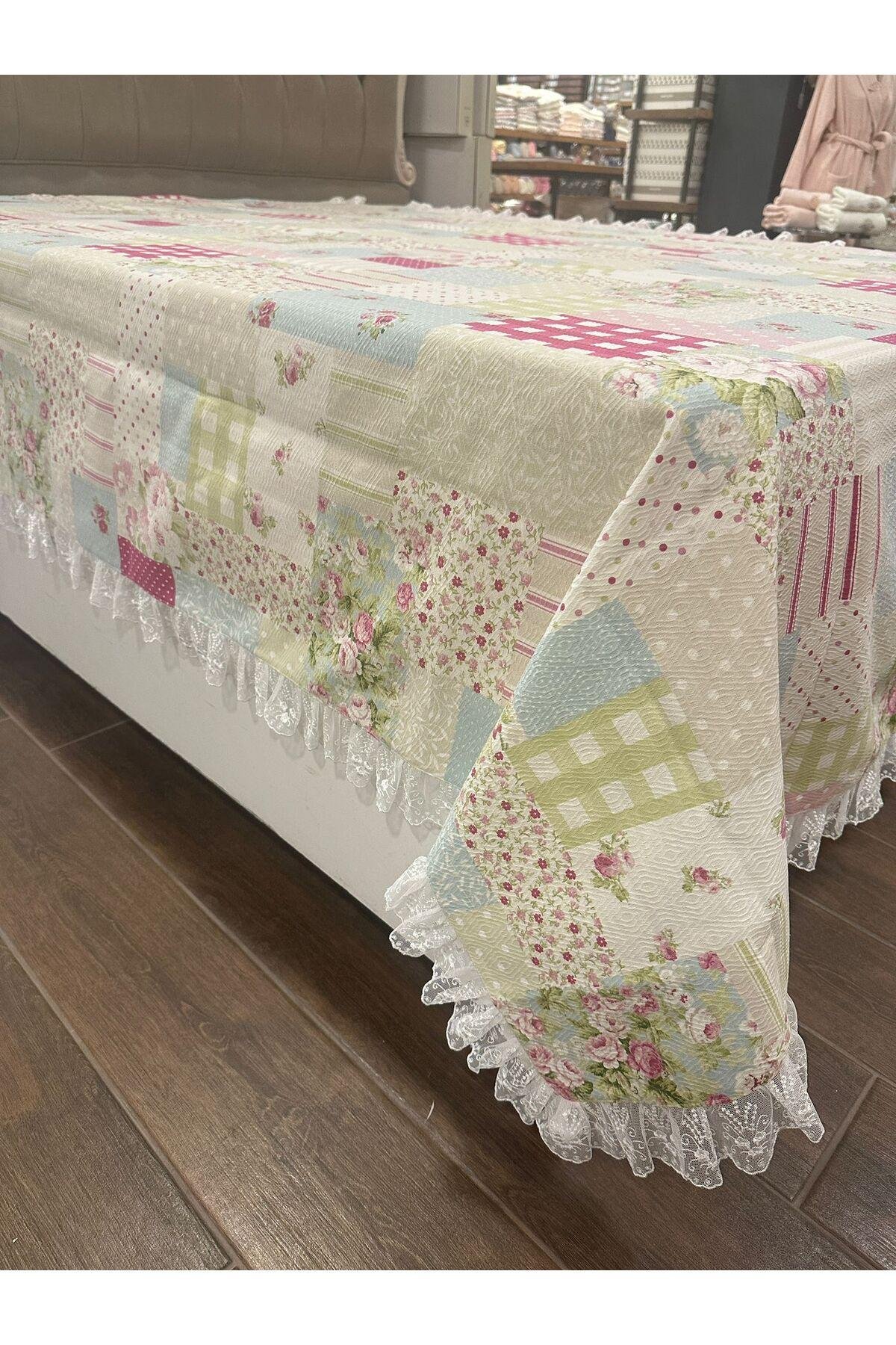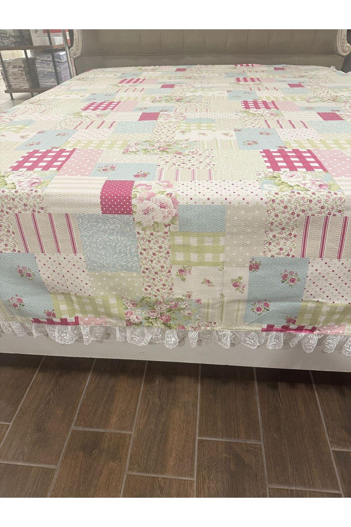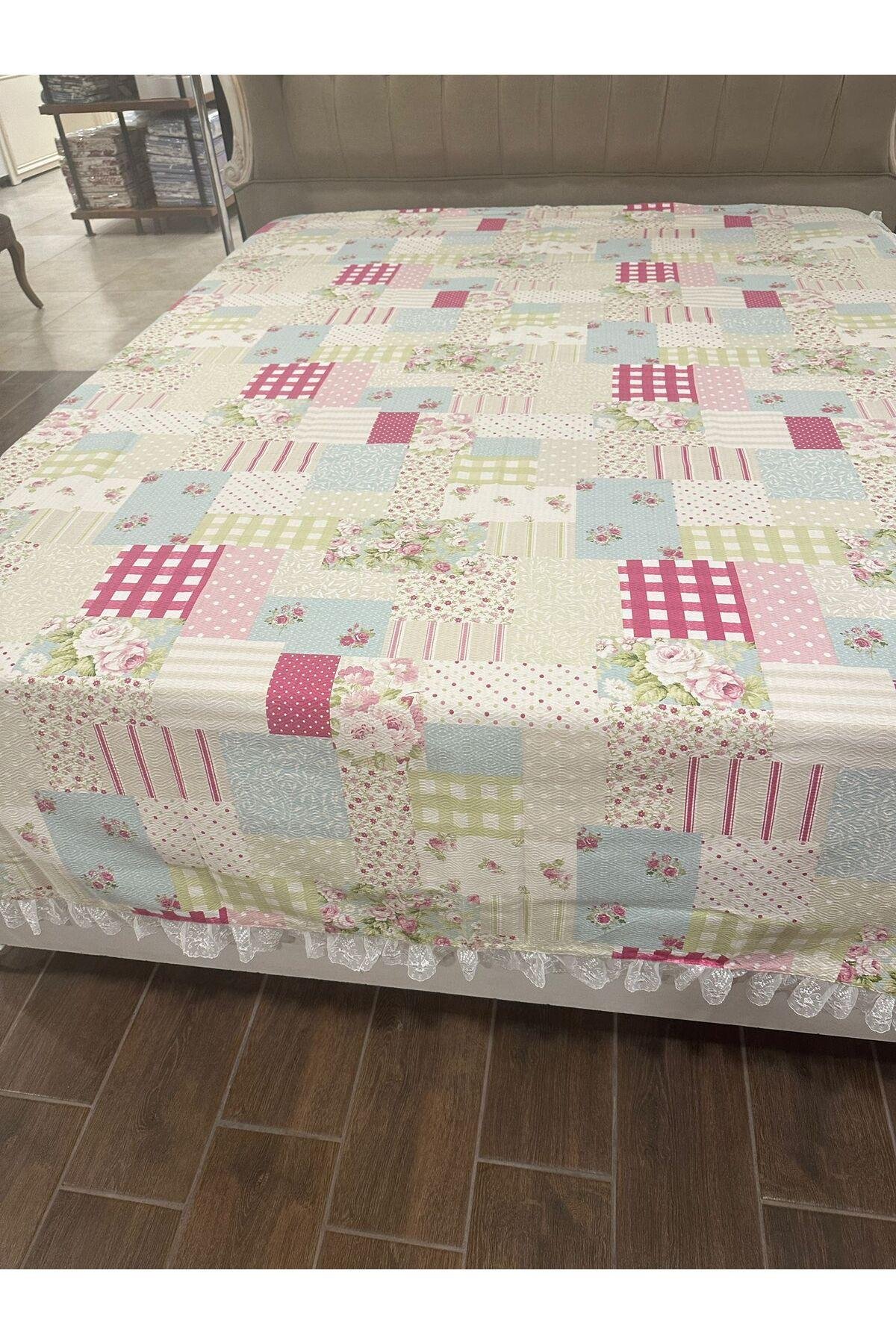 - %100 pamuk materyalden üretilmiş olup, cildinize nazik dokunuşuyla konforlu bir uyku deneyimi sunar.; - Dantelli detaylarıyla şık ve zarif bir görünüm kazandırır, yatak odanızın atmosferini zenginleştirir.; - Patchwork deseniyle modern ve trend bir stil sunar, yatak odanızın dekorasyonuna farklı bir hava katar.; - Tek kişilik boyutuyla ideal uyum sağlar, rahat ve geniş bir yatak alanı sunar.; - Yıkama talimatlarına uygun şekilde temizlendiğinde uzun ömürlü kullanım imkanı tanır.; - Kutu içerisinde güvenli bir şekilde paketlenmiş olarak gelir, kolayca saklama ve taşıma avantajı sağlar.; - Menşei bilgisi belirtilmemiş olup, kalite standartlarına uygun olarak üretilmiştir.;