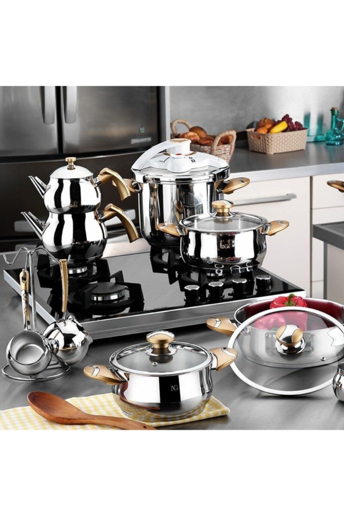 Porselen 18 Parça Çelik Çeyiz Takımı Set Gold