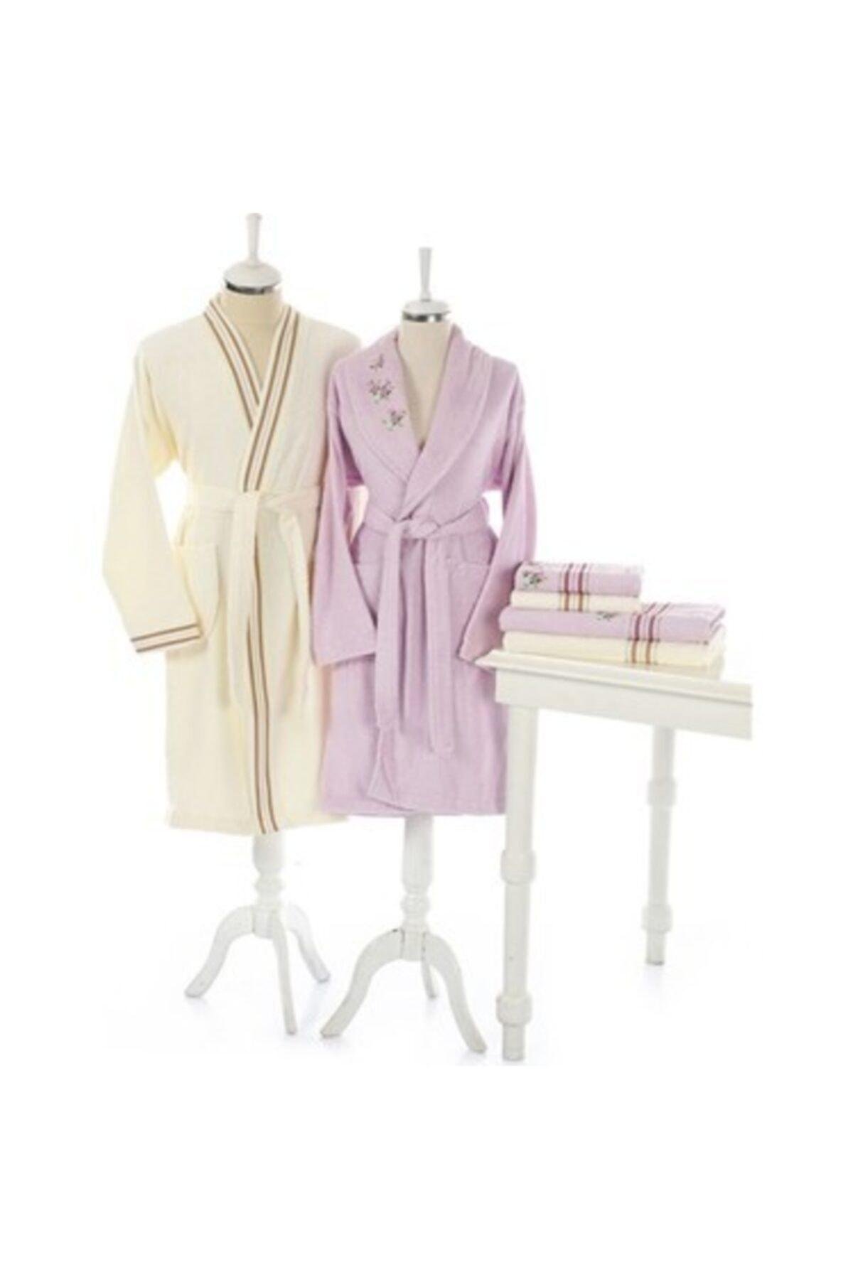 Pamuklu yapısı ile suyu hızla emer ve hızlı kurur, böylece banyo sonrası konforunuzdan ödün vermezsiniz; - Reneta krem lila rengiyle şık ve zarif bir görünüm sunar, banyo sonrası anlarınıza renk katar;