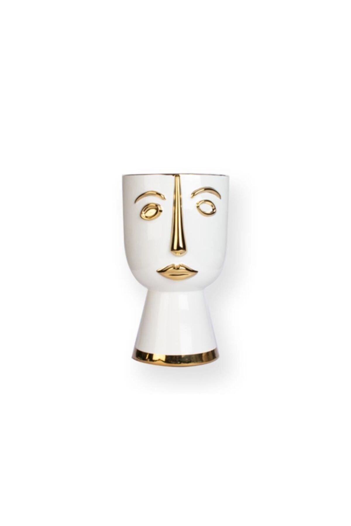 Zücev Solera 30 cm Seramik Gold/Beyaz Dekoratif Ayaklı Vazo SOLERA-06