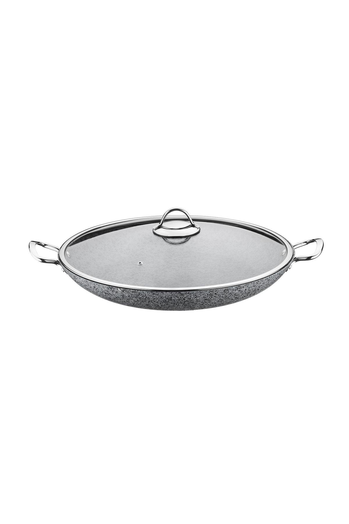 Dev kapasite : kalabalık sofralar, davetler için ideal.; ; Çizilmez PEEK kaplama : metal kaşıkla bile güvenli.; ; 5 yıl garanti : yanmaz, yapışmaz, çizilmez yüzey.; ; Sertifikalı güven : lfgb, sgs, fda, pahs, rohs, reach.; ; Su & leke tutmaz : zahmetsiz temizlik, maksimum hijyen.; ; Fırında kullanım : 300°c’ye kadar güvenle.; ; 4 mm gövde : eşit ısı dağılımı, kusursuz pişirme.; ; Gizli indüksiyon taban : tüm ocaklarla uyumlu, ayrılmaz sağlamlık.; ; El yakmaz kulplar : çelik perçinli, gevşemez, kaymaz.; ; Temperli cam kapak : buhar çıkışlı, güvenli ve şık.