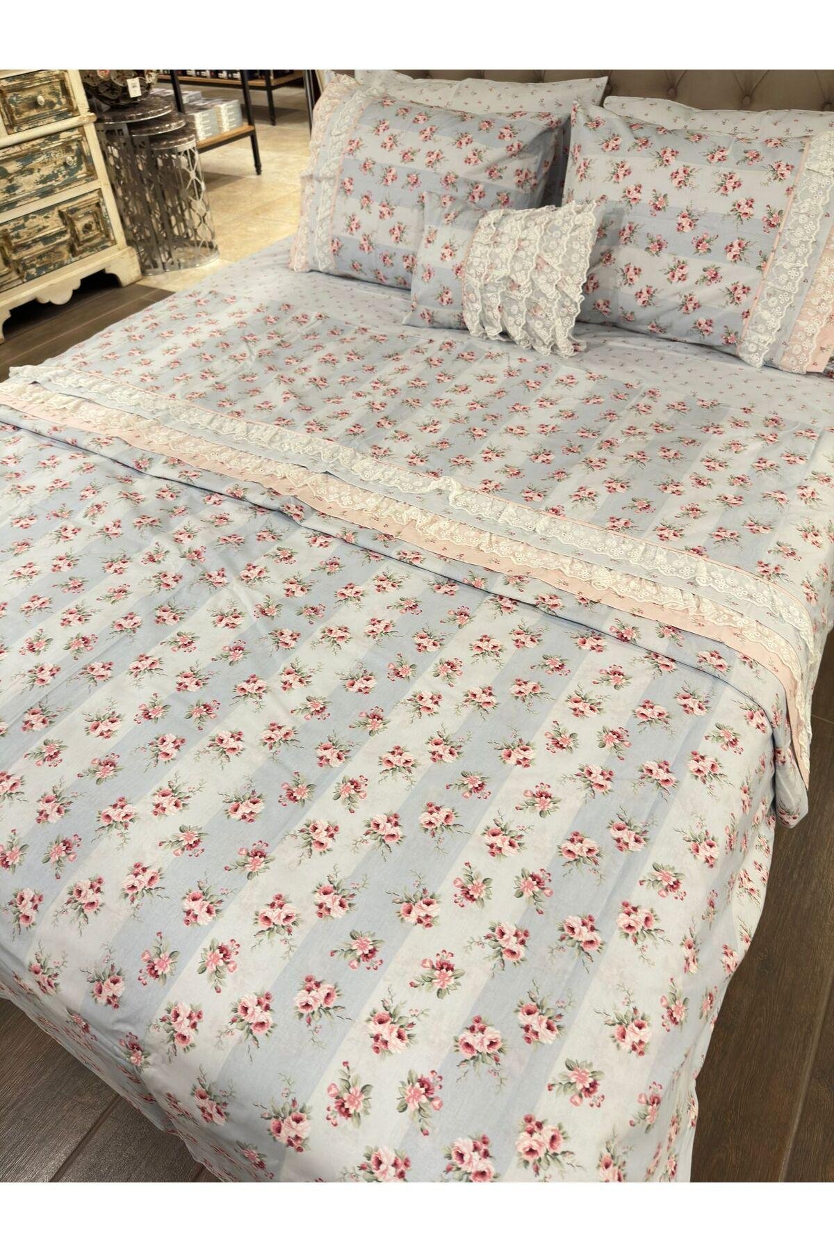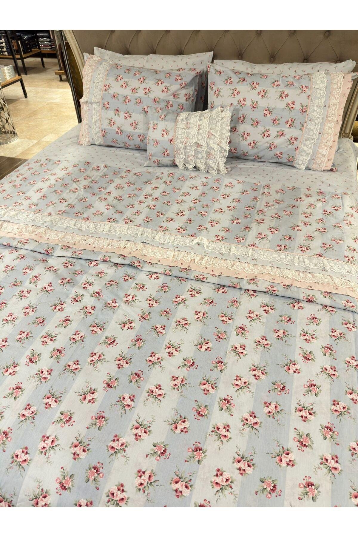 - %100 pamuklu kumaşı ile cildinize nefes aldıran ve doğal bir yumuşaklık sunan nevresim takımı.; - 240 x 260 cm boyutlarındaki çift kişilik boyutu, geniş ve rahat bir uyku alanı sağlar.; - Lastiksiz tasarımı sayesinde çarşaflarınız yatağınıza mükemmel uyum sağlar ve kolayca yerleştirilebilir.; - Canlı ve göz alıcı çiçek desenleriyle yatak odanızda şıklığı ve neşeyi beraberinde getirir.; - Paket içeriğindeki 7 parçadan oluşan set; nevresim, yastık kılıfı ve ekstra yastık kılıfını içerir, ihtiyacınız olan her şey tek pakette.; - Yıkama talimatlarına uygun bakım ile uzun süre ilk günkü kalitesini korur.; - Özel kutusuyla hediye olarak da tercih edebileceğiniz bu nevresim takımı, sevdiklerinize özel günlerde unutulmaz anlar yaşatabilir.; - Hava geçirgen yapısı sayesinde mevsim fark etmeksizin konforlu bir uyku deneyimi sunar.; - Çok renkli web renk seçeneğiyle modern ve dinamik bir görünüm kazandırır.
