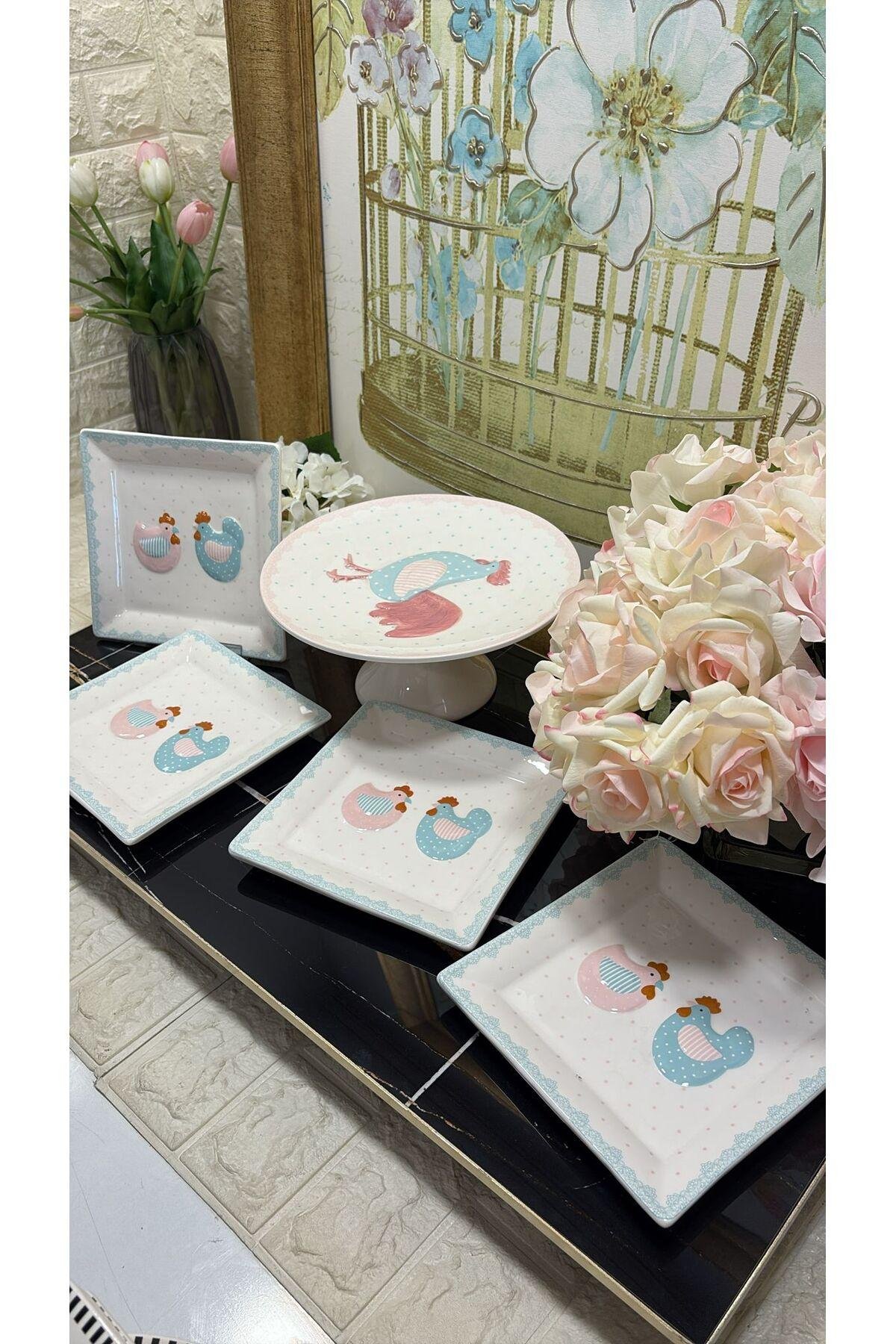 - Bakım kolaylığı için elde yıkama önerisiyle pratik kullanım sunar.; - Beş parçadan oluşan set, farklı boyutlardaki kek ve pastalarınız için idealdir.; - BPA içermeyen malzemesi ile sağlığınızı düşünerek tasarlanmıştır.; - Seramik yapısı sayesinde uzun ömürlü ve dayanıklı bir kullanım vaat eder.; - Kare şekliyle modern ve şık bir görünüm sergilerken, her türlü sofra düzenine uyum sağlar.; - Hayvan desenleriyle zenginleştirilmiş tasarımıyla göz alıcı bir estetik sunar.; - Çin menşeli olup, kalite standartlarına uygun üretilmiştir.; - 26 cm çapındaki geniş yüzeyi ile büyük porsiyonları rahatlıkla servis etmenize olanak tanır.; - ayaklı sunum 26x26 yükseklik 13 cm 1 adet - kare tabak 19x19 cm 4 adet