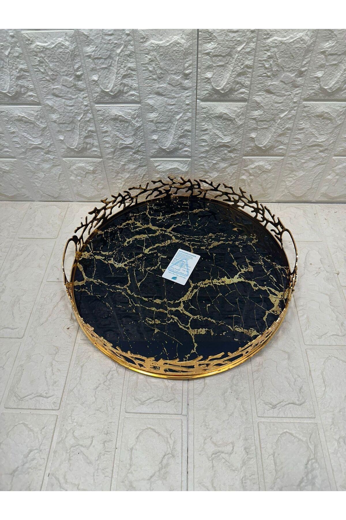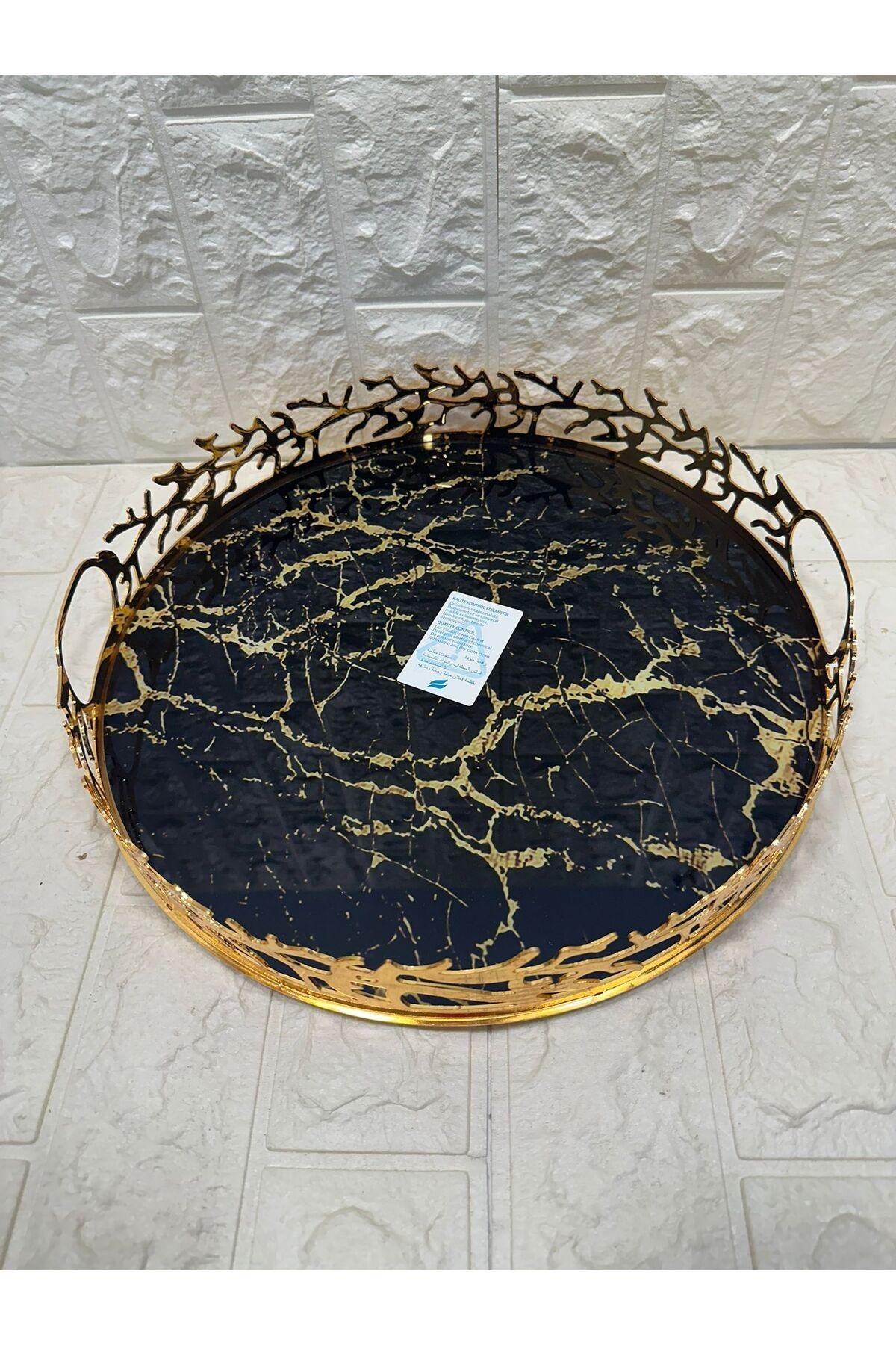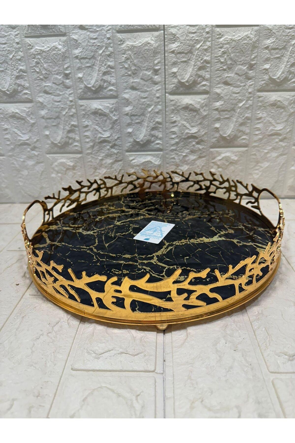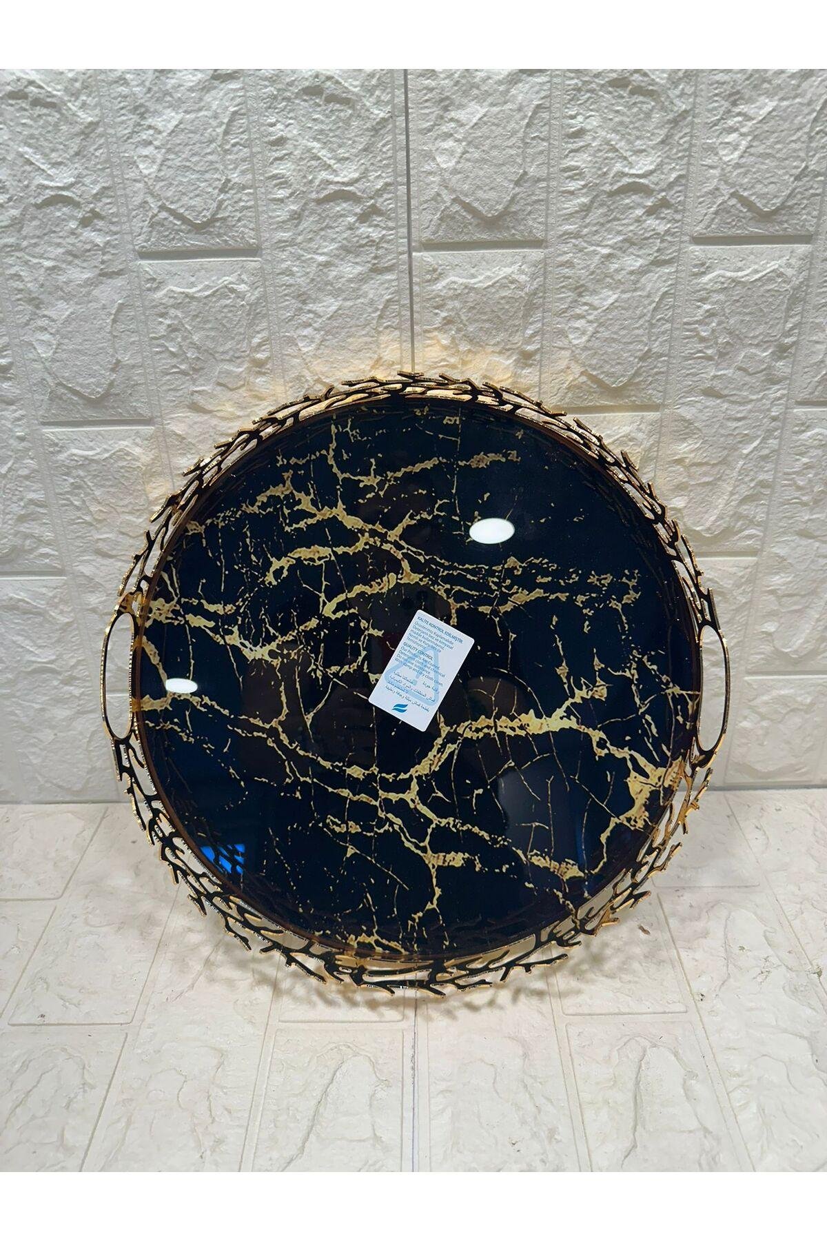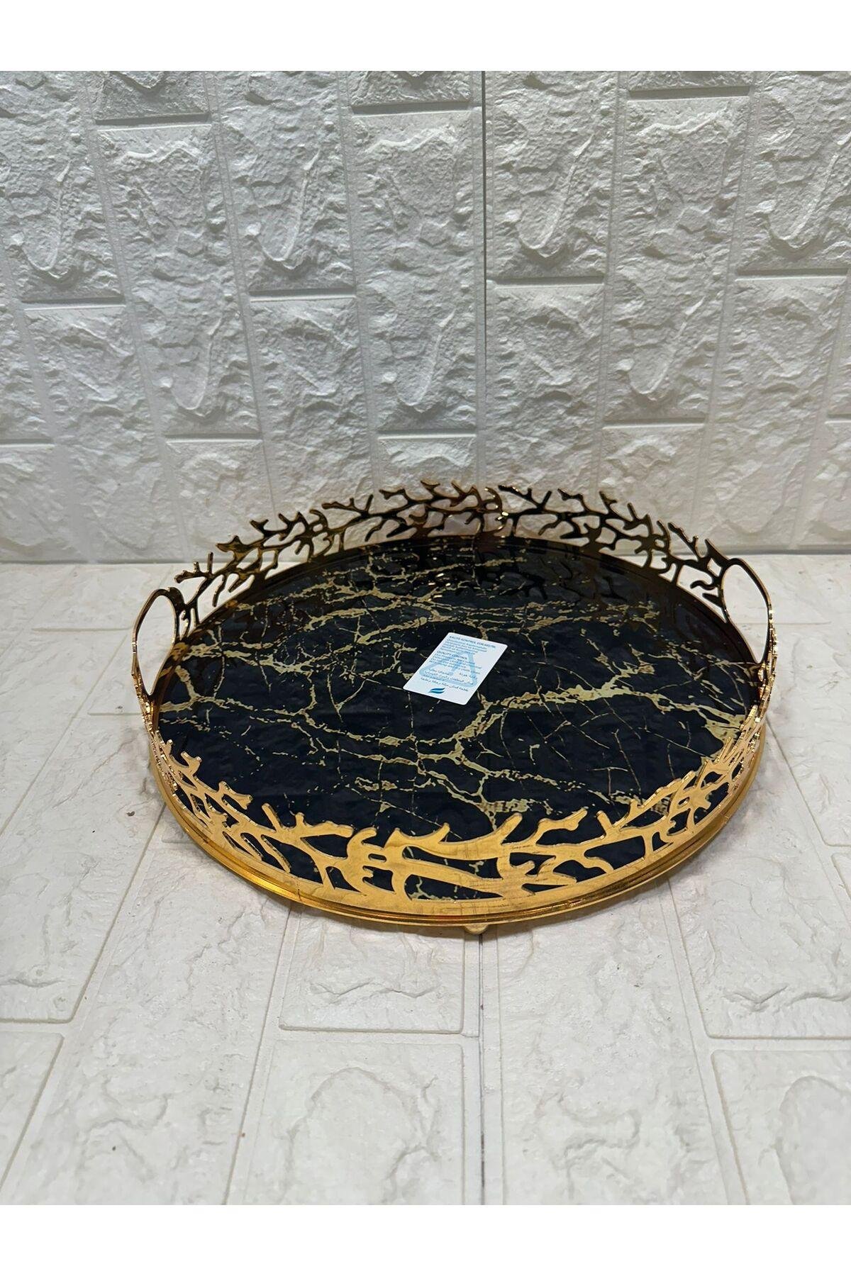 TEPSİ YUVARLAK BÜYÜK MERMER GOLD 35 cm