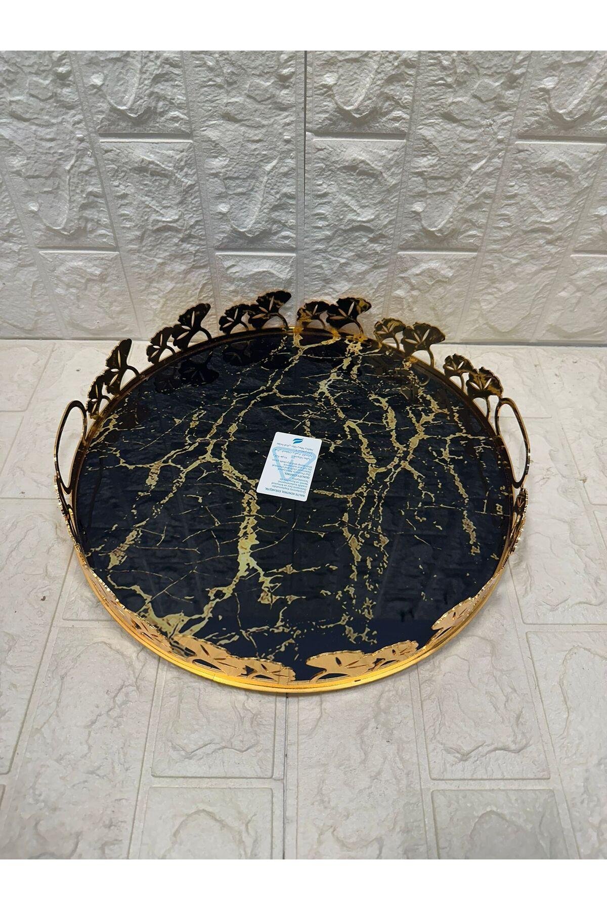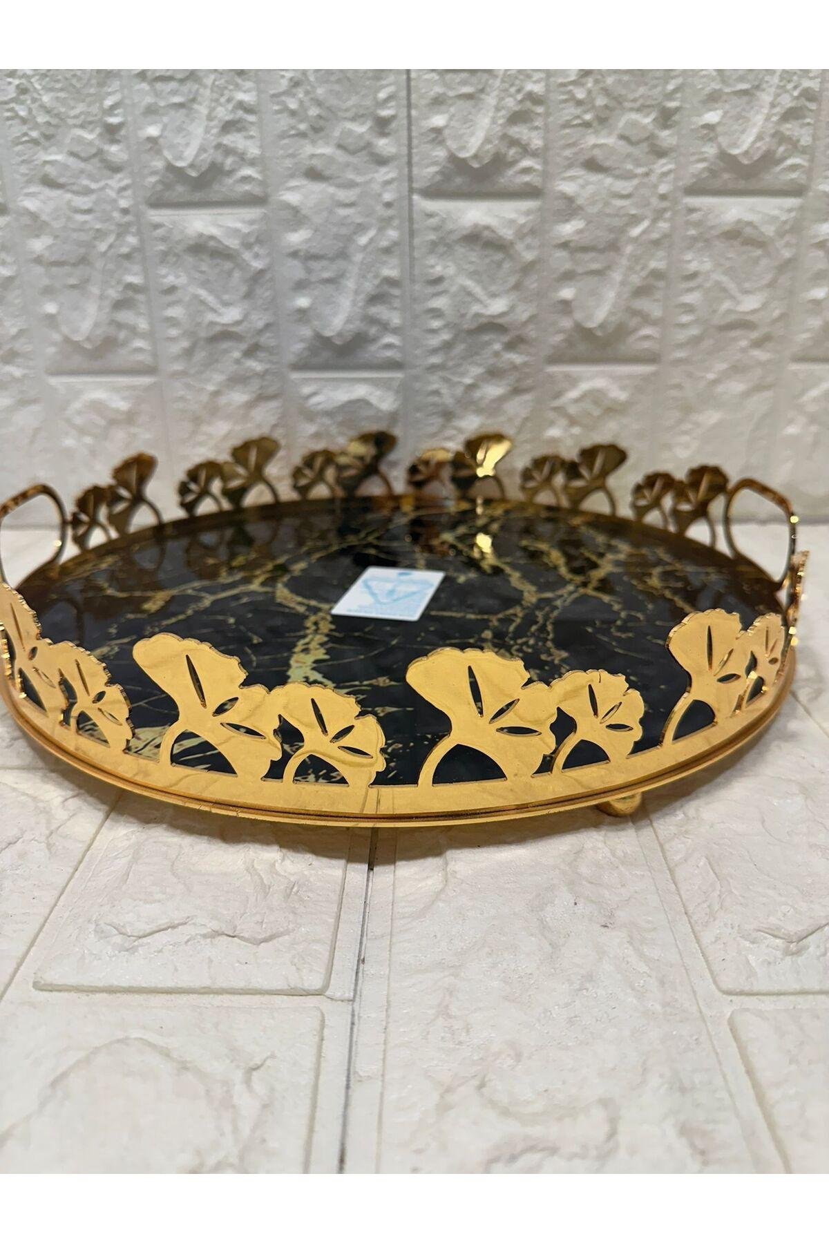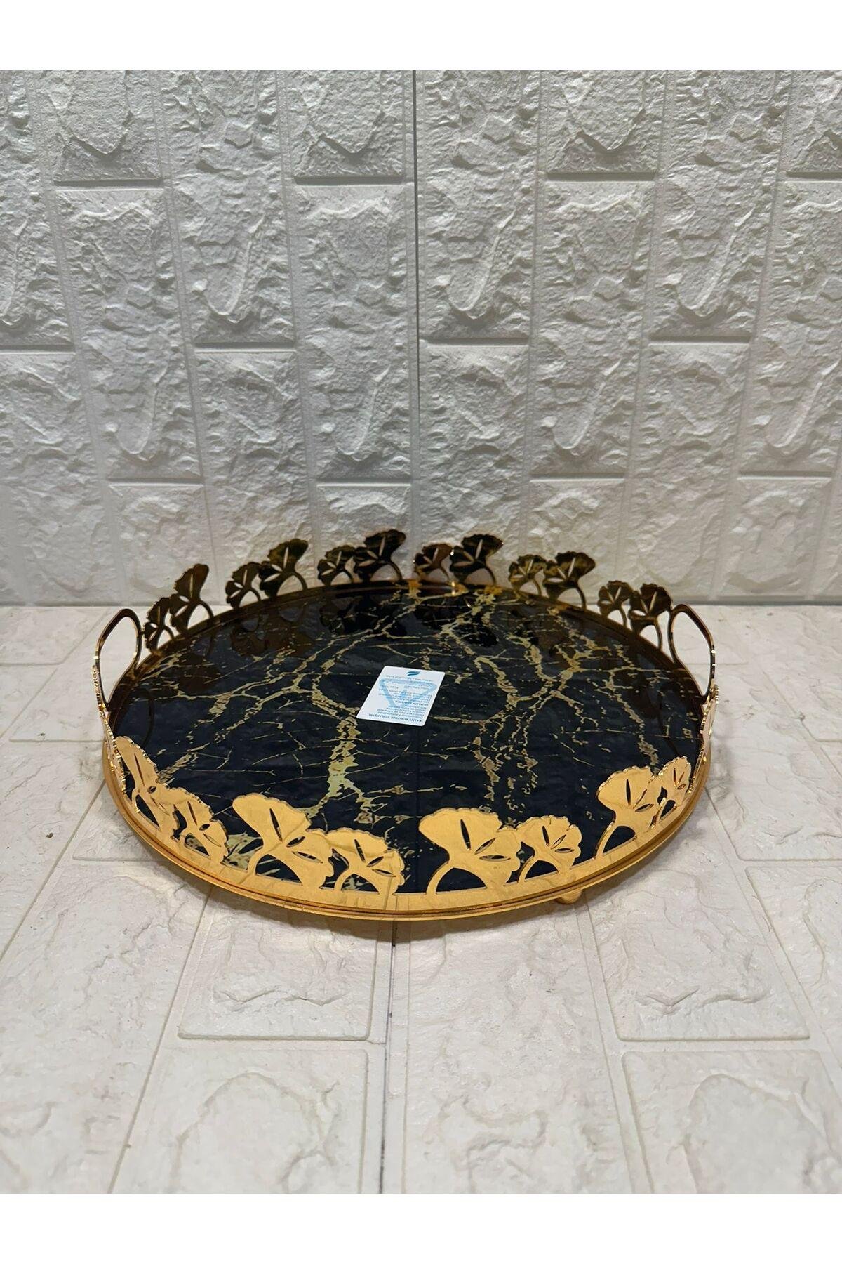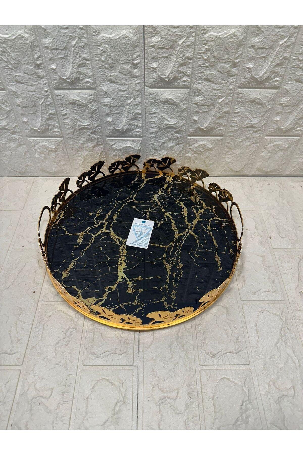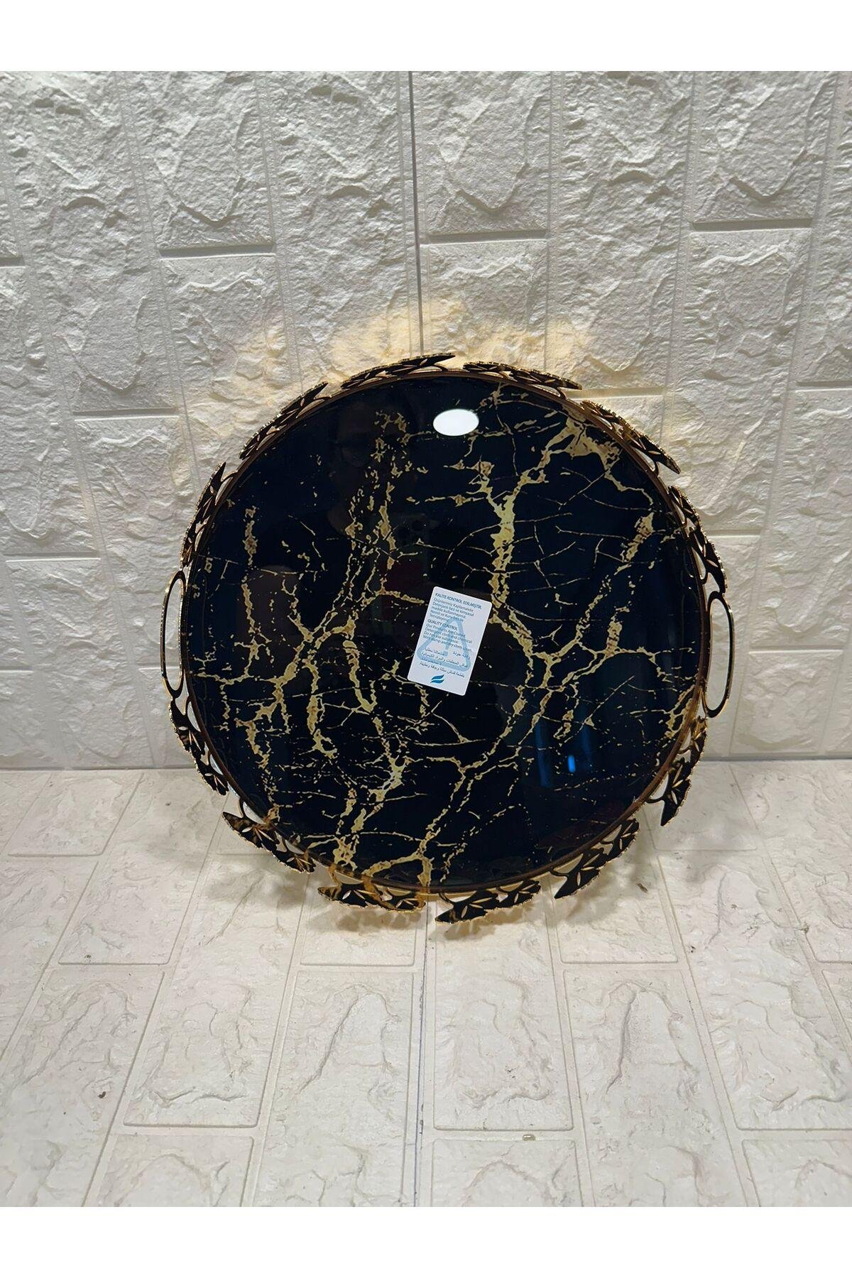 TEPSİ YUVARLAK BÜYÜK MERMER GOLD 35 cm