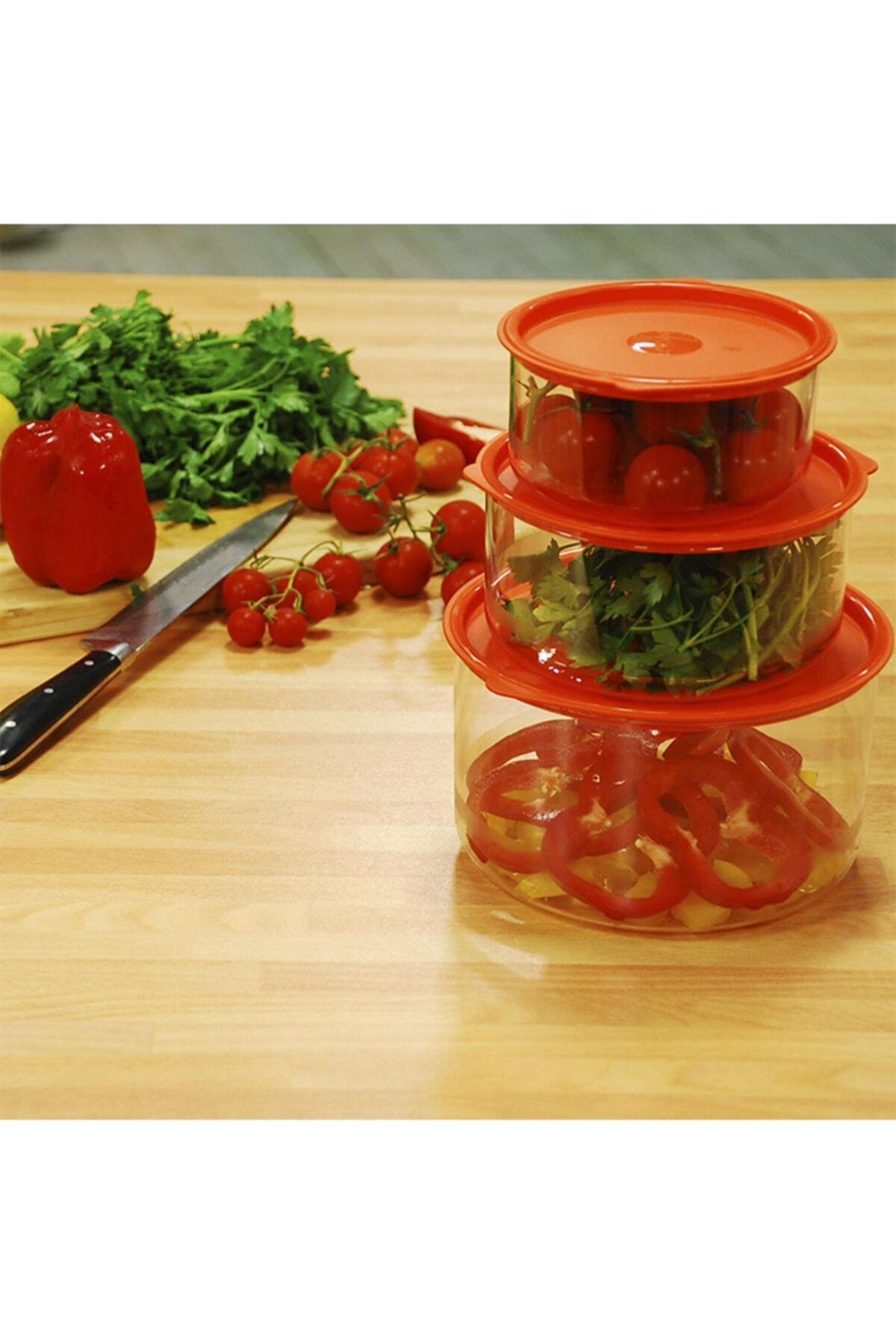 1 Adet 0.6 lt - 1 Adet 1.1 lt - 1 Adet 2.2 lt Yuvarlak Saklama Kabı Polipropilen kapağı sayesinde hava almadığı için yiyecekleriniz uzun süre tazeliğini, tat ve formlarını korur. Bakteri oluşumunu engelleyerek gıdaların tazeliğini uzun süre korur. Derin dondurucu ve mikrodalga fırında kullanıma uygundur. Elde ve bulaşık makinesinde kolayca temizlenebilir. Cam görünümlü tam şeffaf Tritan dış yüzeye sahiptir. Esnek, hafif, dayanıklı ve sağlıklıdır. Mutfağınızda düzen ; buzdolabı ve derin dondurucuda uygun kullanım alanı sağlar. Teknik Özellikler Küçük Boy: Ağırlığı: 84 Gr Çap (Q):12,3 Cm Derinlik (D): 6,3 Cm Litre (L): 0,6 Lt Orta Boy: Ağırlığı: 132,4 Gr Çap (Q):14,8 Cm Derinlik (D): 7,5 Cm Litre (L): 1,1 Lt Büyük Boy: Ağırlığı: 223 Gr Çap (Q):17,7 Cm Derinlik (D): 10,8 Cm Litre (L): 2,2 Lt Öneriler Ve Bakım İlk kullanımdan önce sıcak su ile yıkayınız. Mikrodalga fırında kullanırken kapağını çıkarınız. Kalıbı ısı kaynaklarına doğrudan temas ettirmeyiniz( çıplak alev, ızgara, elektrikli soba, vb.) Ürünün temizliğinde yumuşak ürünler kullanınız. Aşındırıcı malzemeler (Metal, tel,.. vb.) ürünü çizebileceğinden kullanmayınız Kullanım önerilerini ve bakım talimatlarını mutlaka uygulayın.