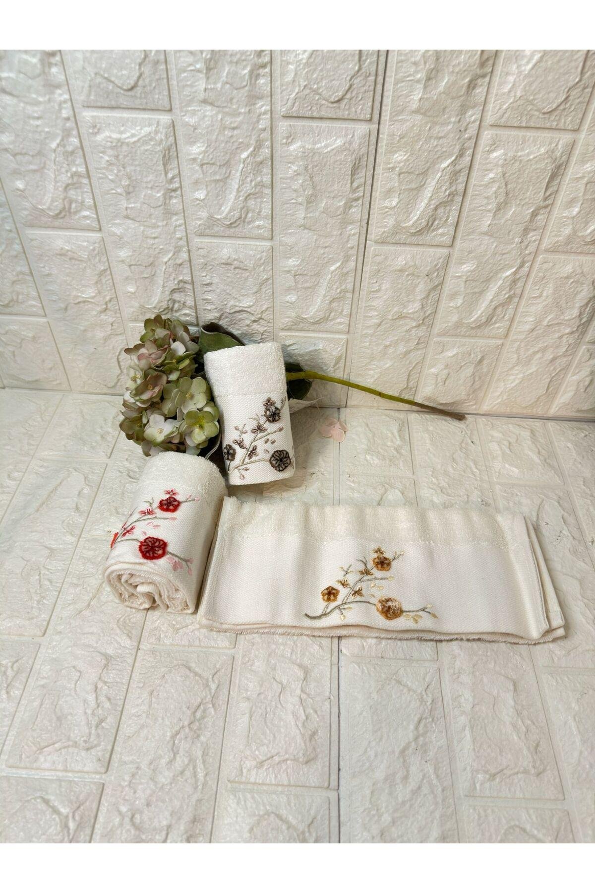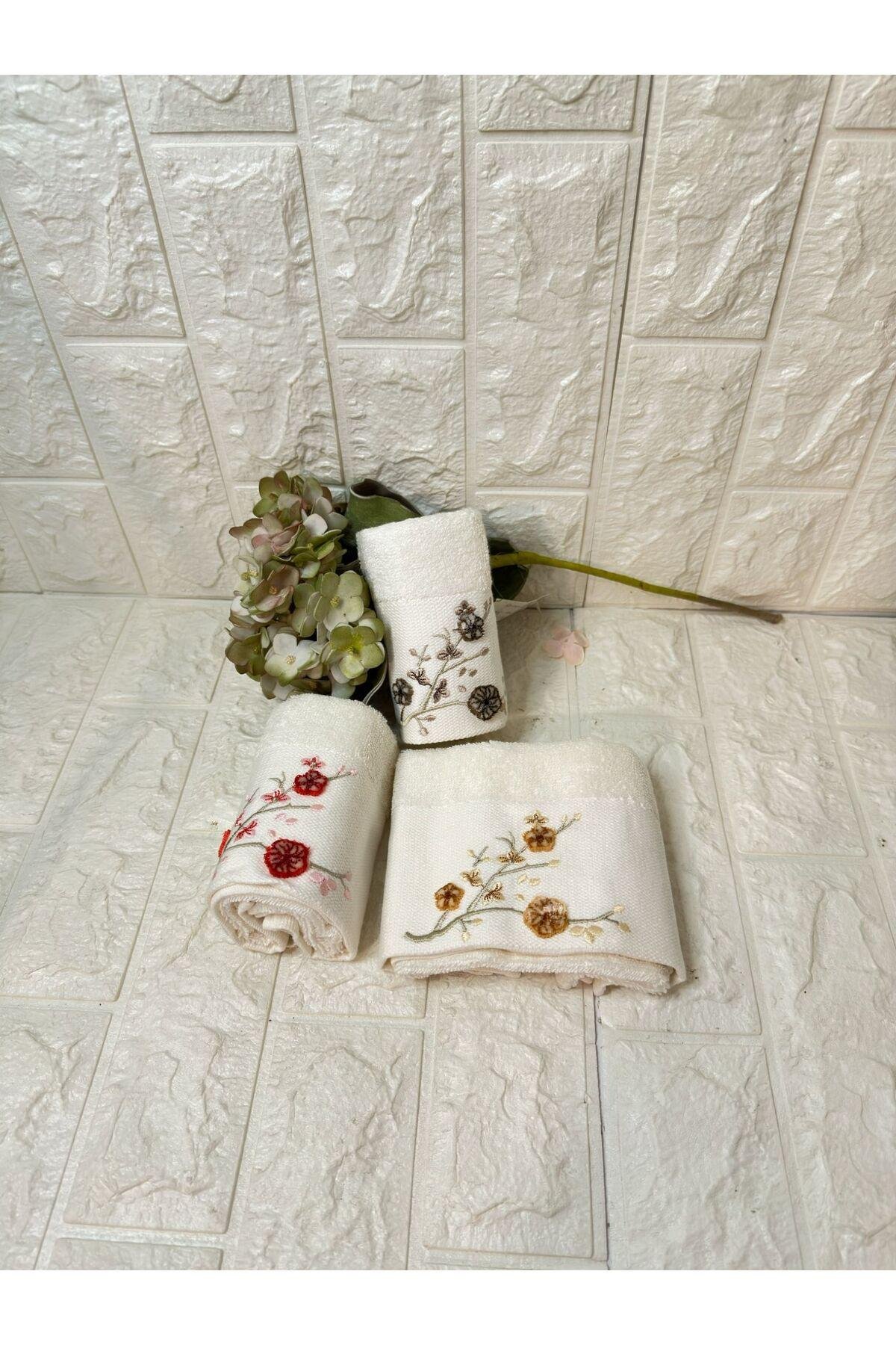 3'lü Mutfak Havlusu Tafting Nakışlı %100 Pamuk 50x30 Cm