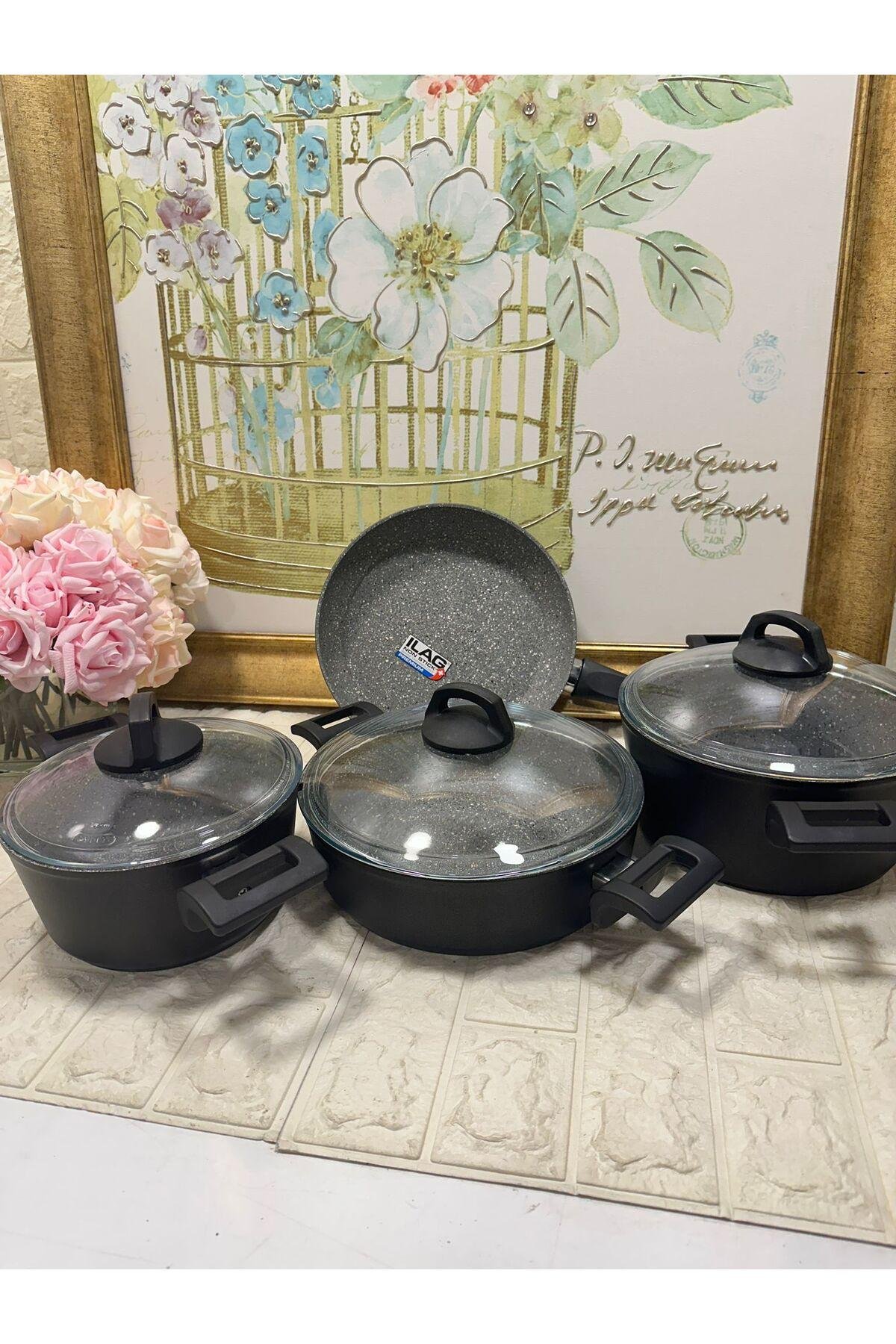 - Yüksek kaliteli granit malzemesi sayesinde yapışmaz taban özelliği, pişirme sırasında yiyeceklerin tencereye yapışmasını önler.; - 7 parçadan oluşan set içeriğiyle mutfak ihtiyaçlarınız tek bir pakette toplanır; her bir parça pratik kullanım sunar.; - İç yüzeydeki mat siyah renk, şık görünümün yanı sıra dayanıklılığı artırarak uzun süreli kullanım imkanı sağlar.; - Dış yüzeydeki granit kaplama, hem estetik hem de fonksiyonel avantajlar sunarak mutfak tezgahınıza modern bir dokunuş katar.; - Kolay temizlenebilir yapısıyla bakımı pratiktir; gıdayla temas eden yüzeylerin hijyenik tutulması kolaylaşır.; - Gıda temasına uygun olarak tasarlanmıştır; güvenle kullanabilirsiniz.; - Renk seçeneği olarak beyaz tercih edilmiştir; mutfak dekorasyonunuza zarif bir uyum sağlar.
