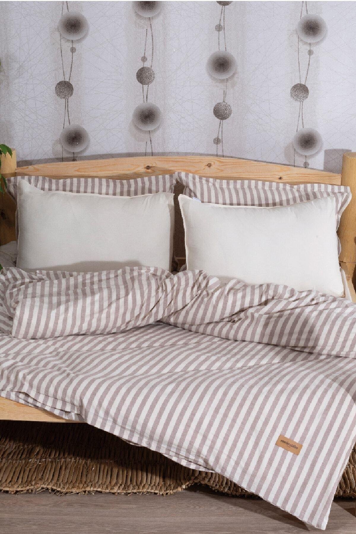 %100 pamuklu kumaşı ile cildinize nazik dokunuşlar sunar ve doğal bir uyku deneyimi sağlar; Solmaya karşı dayanıklı yapısı sayesinde uzun süreli kullanımda bile renklerin canlılığını korur; Şık çizgili deseniyle yatak odanızın dekorasyonuna modern bir dokunuş ekler; 100% pamuk materyal bileşeni, nefes alabilirlik ve konforu bir arada sunarak rahat bir uyku ortamı oluşturur;