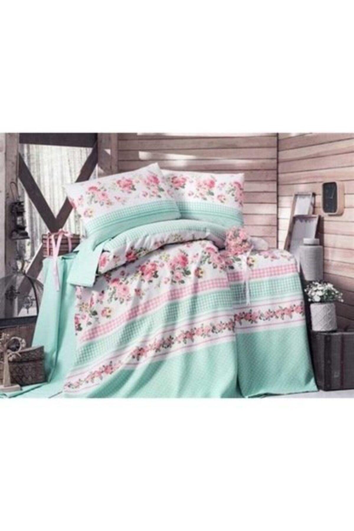 - Çift kişilik boyutlarında, rahat kullanım sunan pamuklu pike takımı.; - Yumuşak dokusuyla konforlu bir uyku deneyimi sağlayan lastiksiz çarşaf.; - Göz alıcı çiçek desenleriyle odanızda şıklığı ve neşeyi yansıtan tasarım.; - Karışık renk seçenekleriyle her zevke hitap eden estetik görünüm.; - Yeşil tonlarındaki web color ile mekanınıza canlılık katan renk paleti.; - Kolay bakım imkanı sunan yıkama talimatları sayesinde uzun süre ilk günkü gibi kalır.; - Tek parça halinde gelen paket içeriğiyle ihtiyacınız olan her şey tek seferde elinizin altında.; -
