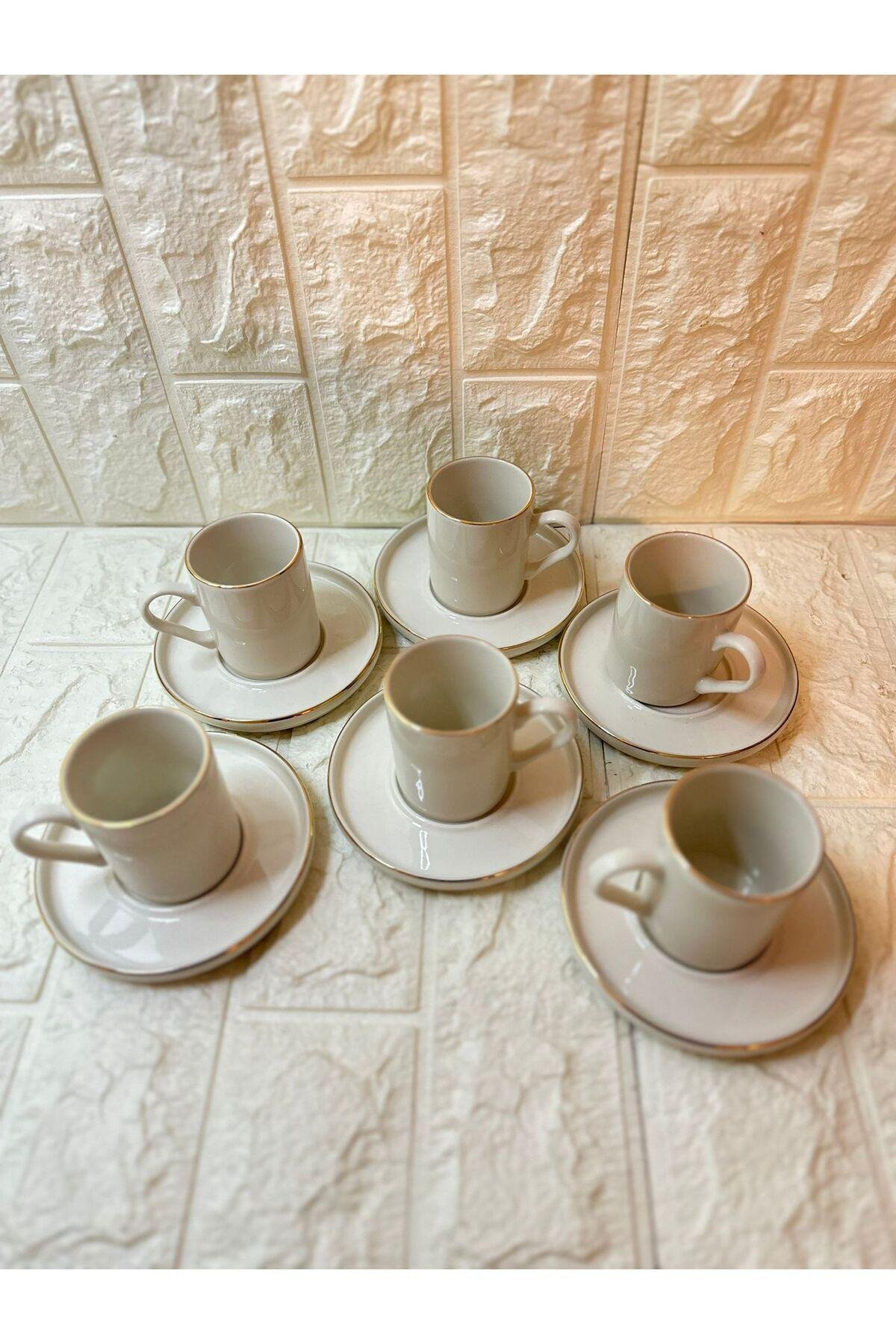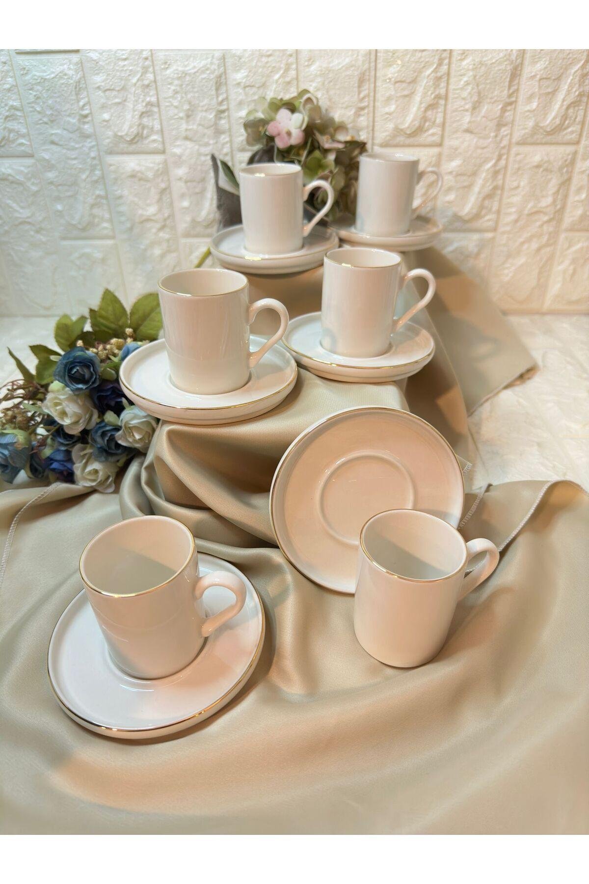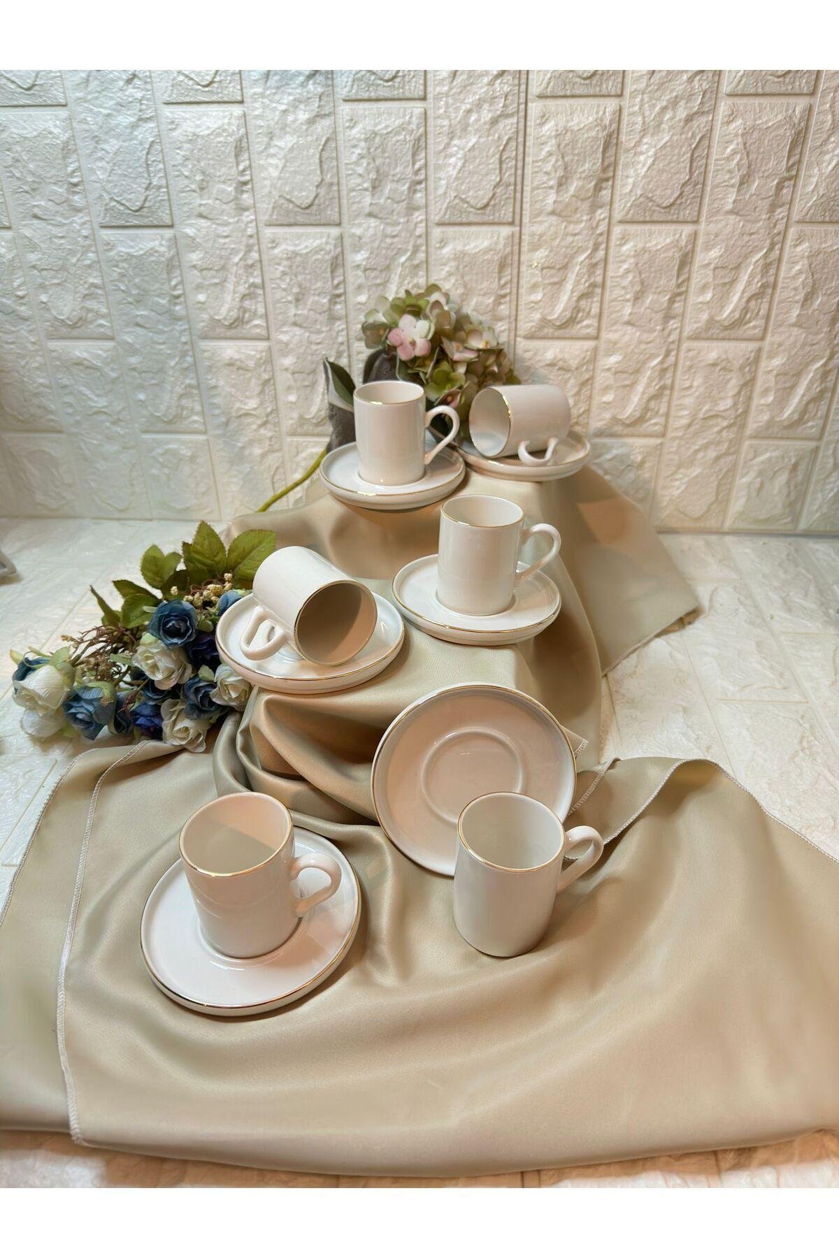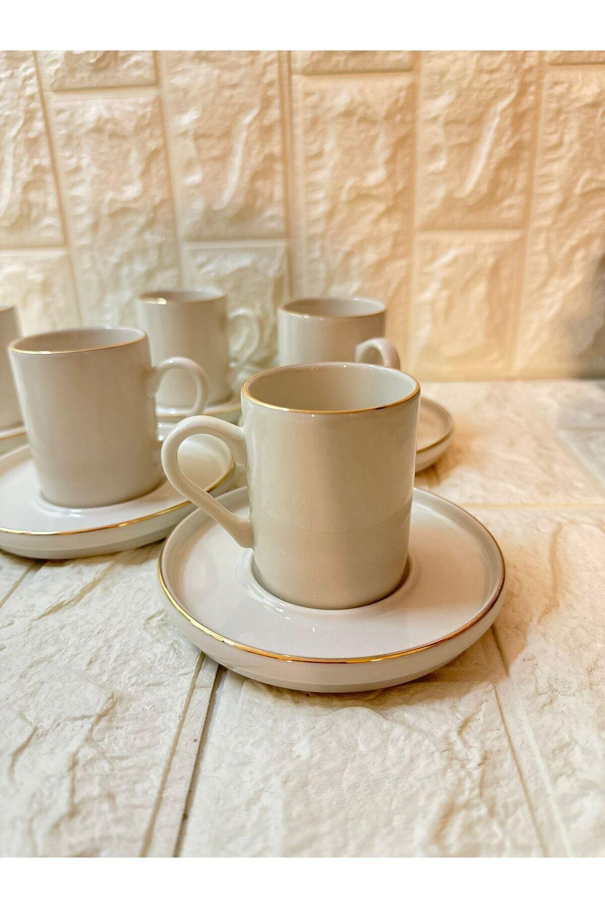 Porselen malzemesi sayesinde uzun ömürlü ve dayanıklı kullanım sunar; Modern tasarımı ile mutfak dekorasyonunuza şık bir dokunuş katar; 6 kişilik set, arkadaşlarınız veya ailenizle keyifli kahve sohbetleri için idealdir;
