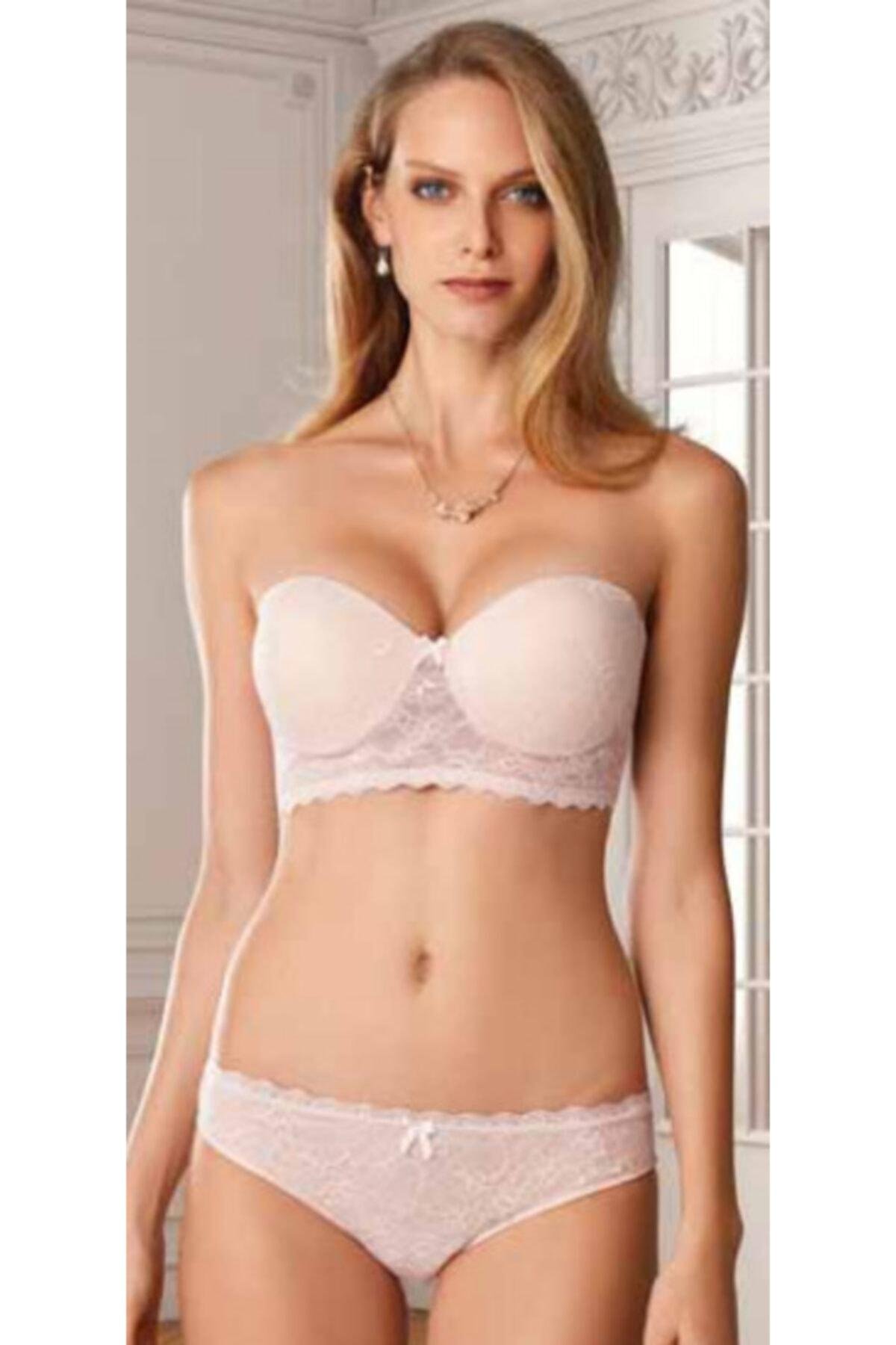 Kadın Pembe Soft Push Up Straplez Sütyen Takım