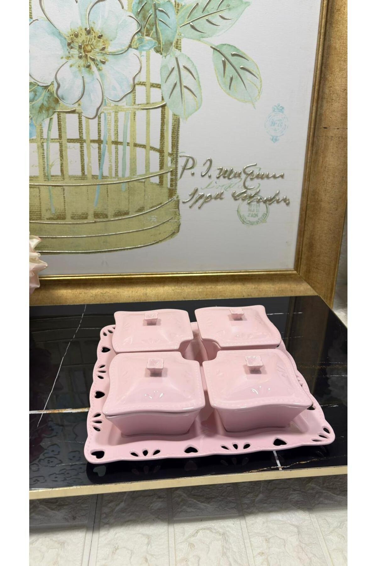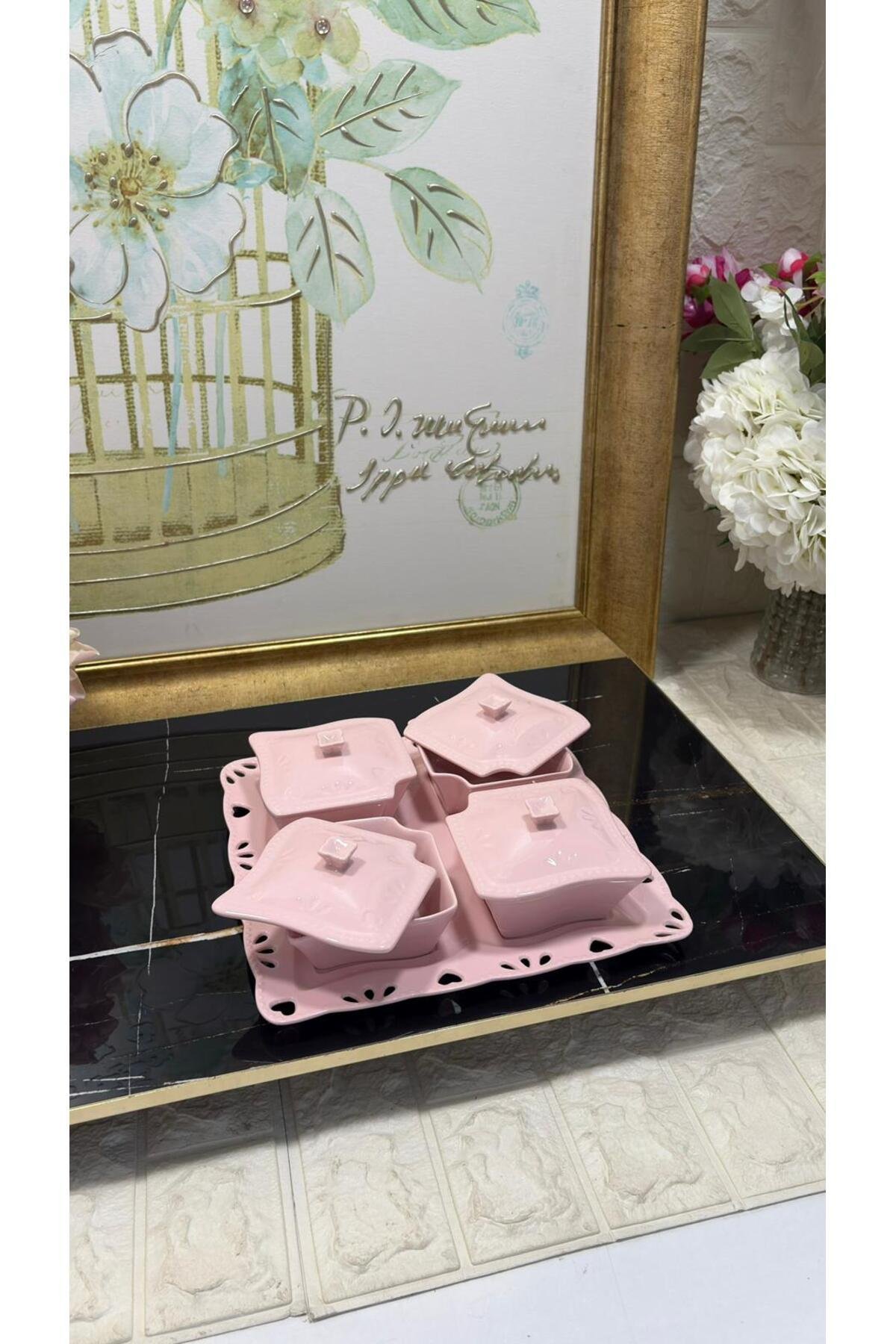 - Güvenli gıda temasına uygun olarak tasarlanmıştır, böylece kahvaltılarınızda porselenin zarafetiyle sağlıklı beslenmenizin keyfini çıkarabilirsiniz.; - Yüksek kaliteli porselen malzemesi sayesinde uzun ömürlü kullanım sunar ve mutfak dekorasyonunuza şık bir dokunuş ekler.; - Bakımı kolaydır; temizliği pratiktir ve dayanıklılığıyla ön plana çıkar.; - Çin menşeli bu ürün, yerel üretimden gelen zengin kültürel mirası evinizde sergilemenize olanak tanır.; - Set içerisindeki parçalar toplamda 9 adet olup, çeşitli ihtiyaçlarınıza uyum sağlayacak şekilde geniş bir kullanım alanı sunar.; sunum tabağı 1 adet 4 adet kahvaltı tabağı ve kapağı - büyük tabak 27x27 cm -1 adet - kahvaltı tabakları 10x10xx5 cm - 4 adet