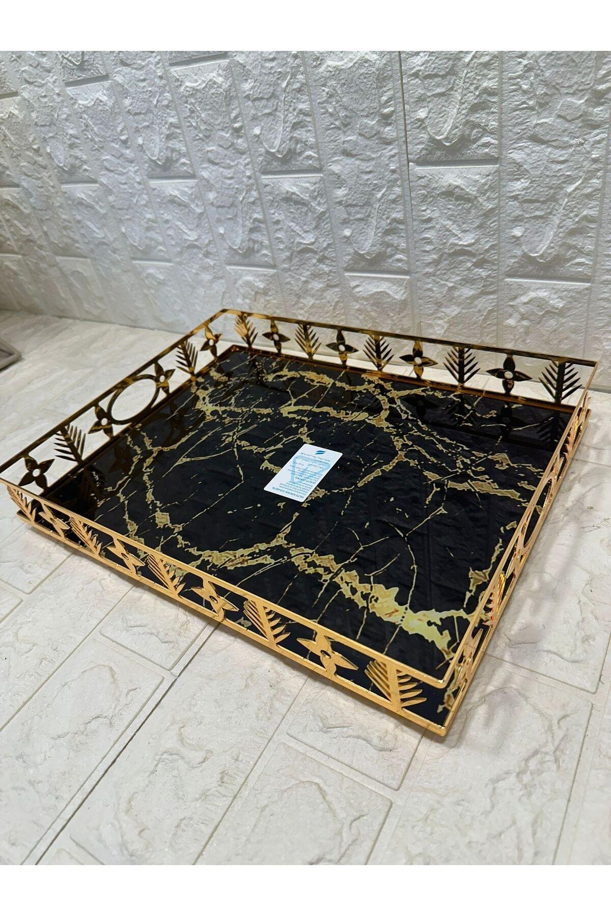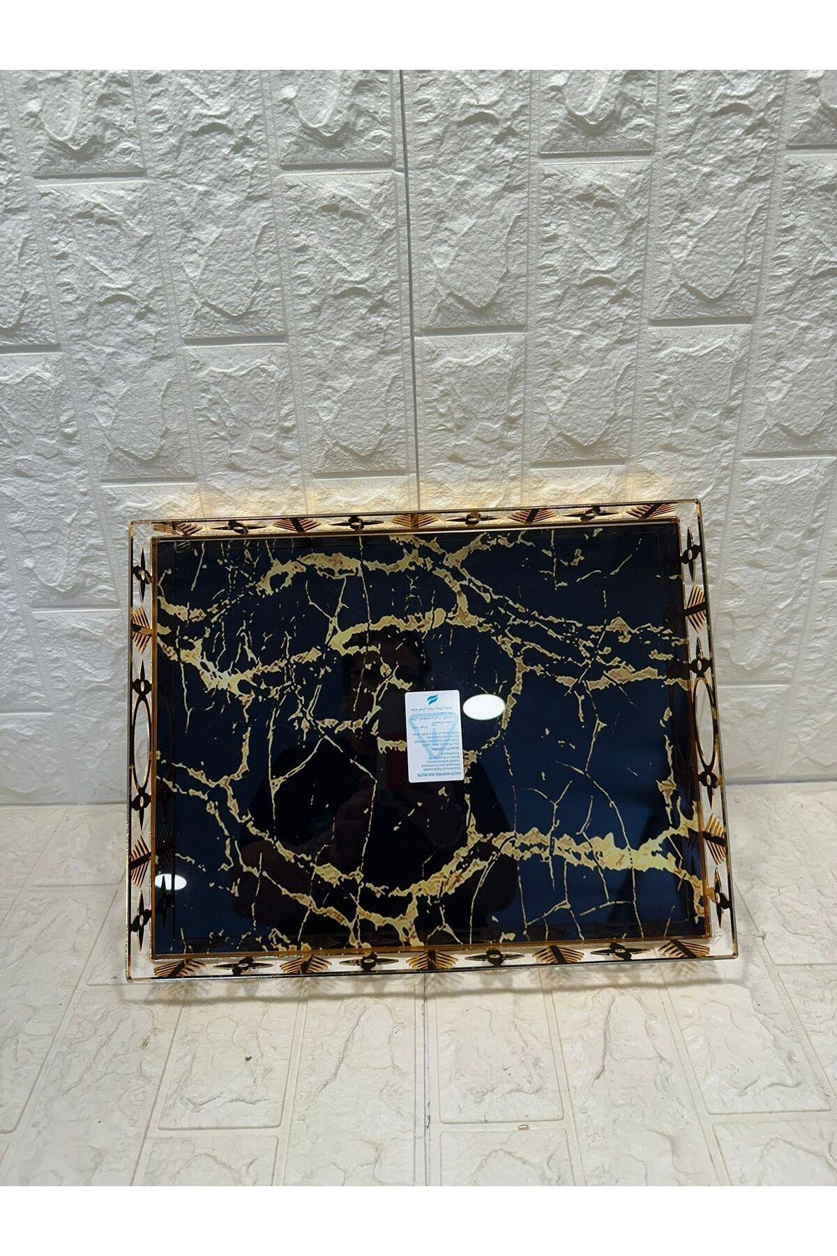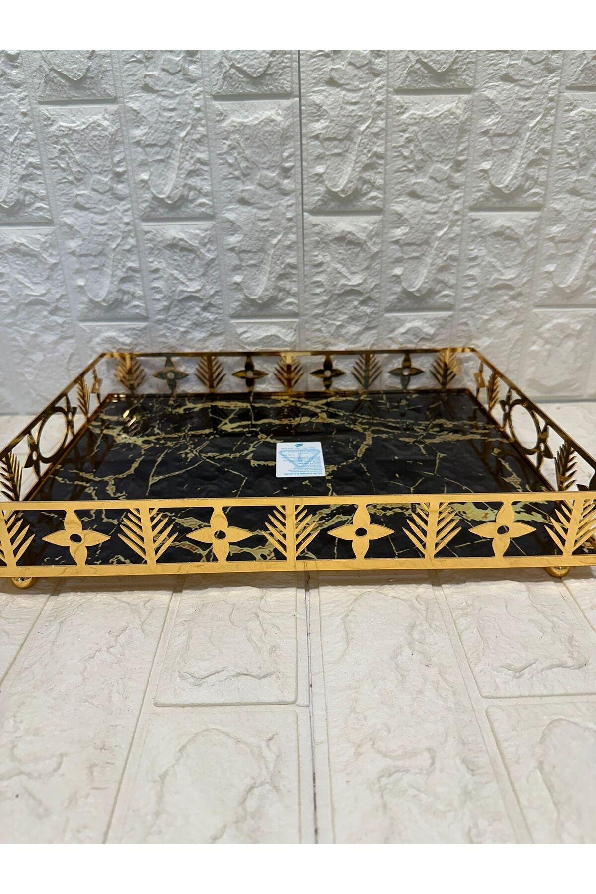 TEPSİ DİKDÖRTGEN BÜYÜK GOLD METAL CAM 40 x 30 cm